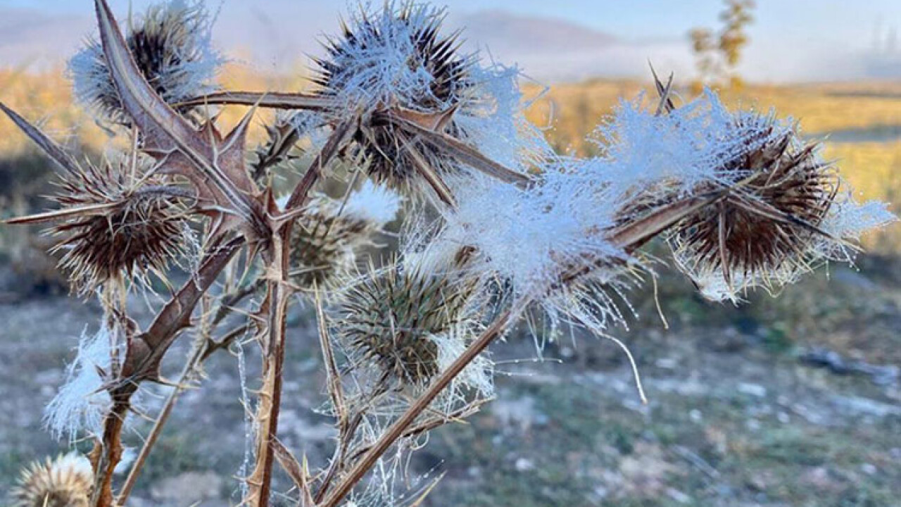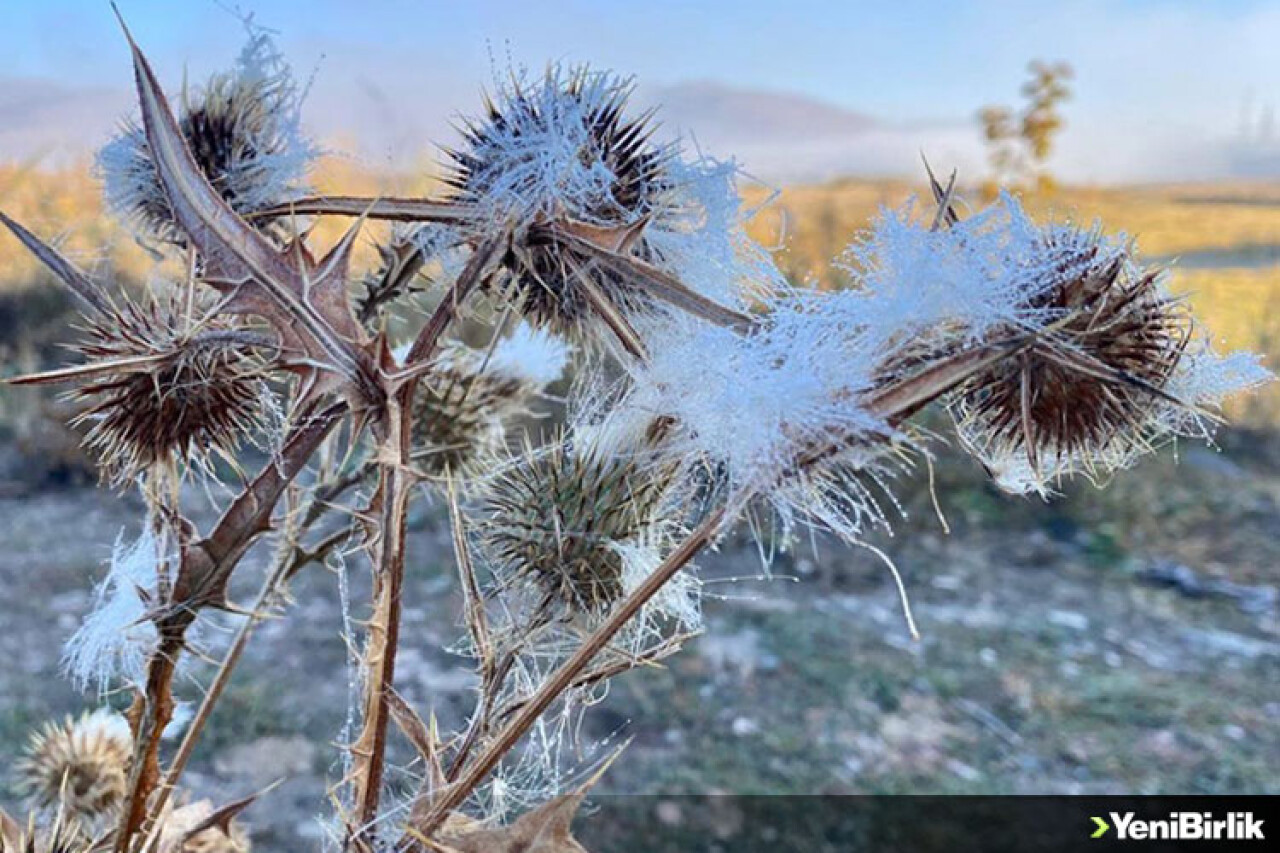 Soğuk hava nedeniyle bitkilerde yoğun kırağı, su birikintilerinde buz tabakası oluştu.