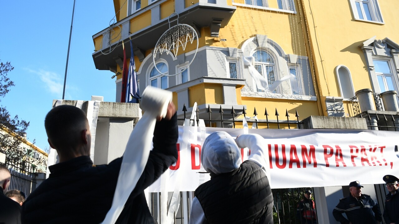 Hükümetin "Üniversite Anlaşması"nda verdiği sözleri tutmadığının ifade edildiği gösteri, akademisyen ve aktivistler tarafından da desteklenirken göstericiler, bakanlık binasına tuvalet kağıdı fırlattı.