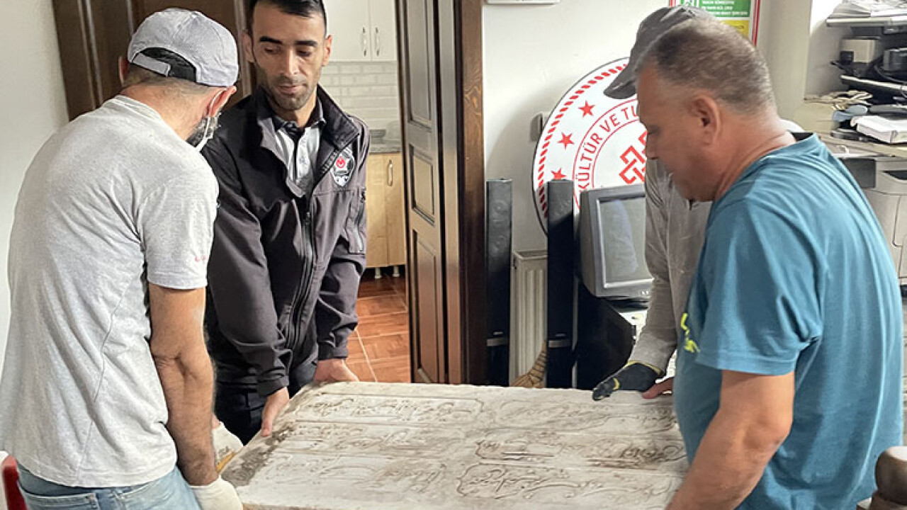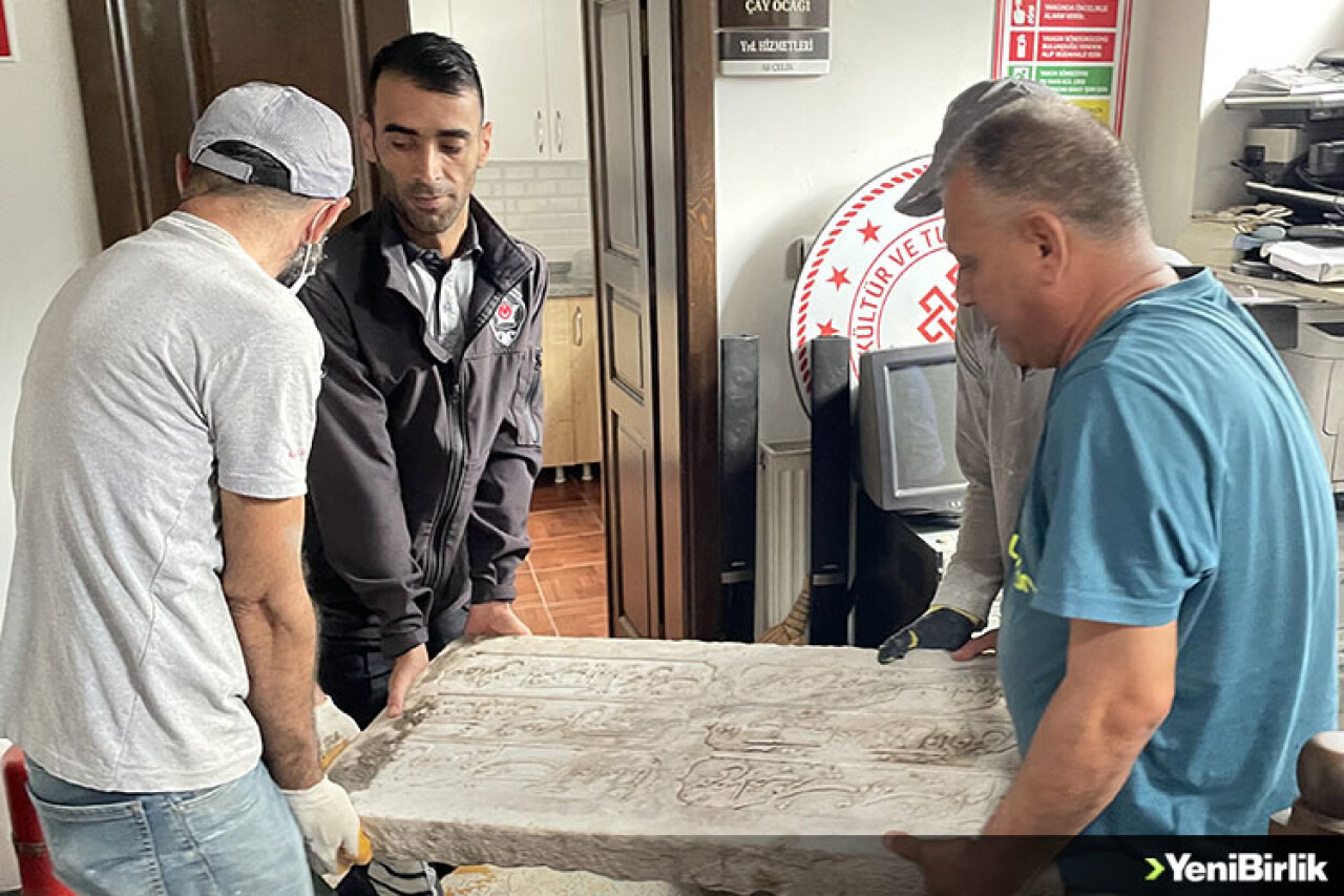 Kentte 2021'de Müze Müdürlüğü kurulduğunu öğrenen Nazım Özdemir, babasından kalan, üzerinde eski Türkçe yazılar bulunan mermeri yetkililere verdi.