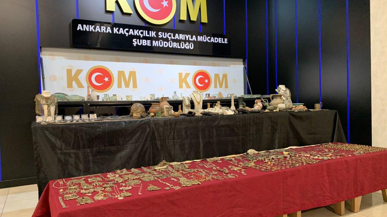 İl Emniyet Müdürlüğü Kaçakçılık Suçlarıyla Mücadele Şube Müdürlüğü ekiplerince, kültür ve tabiat varlıklarının korunması ile kaçakçılığın önlenmesine yönelik çalışma yapıldı. Ekiplerin yaptığı çalışmalar neticesinde Ankara Kalesi civarında etnografik ve arkeolojik eserlerin bulunduğu ikamet ve depolar tespit edildi. Polis ekipleri tarafından düzenlenen eş zamanlı operasyonda; Roma, Bizans, Antik Yunan, Selçuklu ve Osmanlı dönemine ait 4 bin 212 adet altın, gümüş ve bronz sikke ile 893 adet arkeolojik ve etnografik nitelikte obje ele geçirildi. Bir kişi gözaltına alındı.