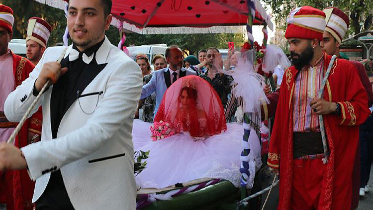 Ayni Ali Mahallesi'ndeki evinin önünden gelin arabası yerine balıkçı teknesine binen Damat Kemal İnser, yakınlarının teknenin halatını çekmesiyle ilerleyerek gelin evine gitti. Baba evinden gelini alan damat İnser, buradaki törenin ardından teknenin halatını çekerek gelini evine götürdü. Bu sırada çevredeki vatandaşlar damat ve gelini ilgiyle izledi. Çift ve yakınları daha sonra araçlarla düğünün yapılacağı alana gitti.