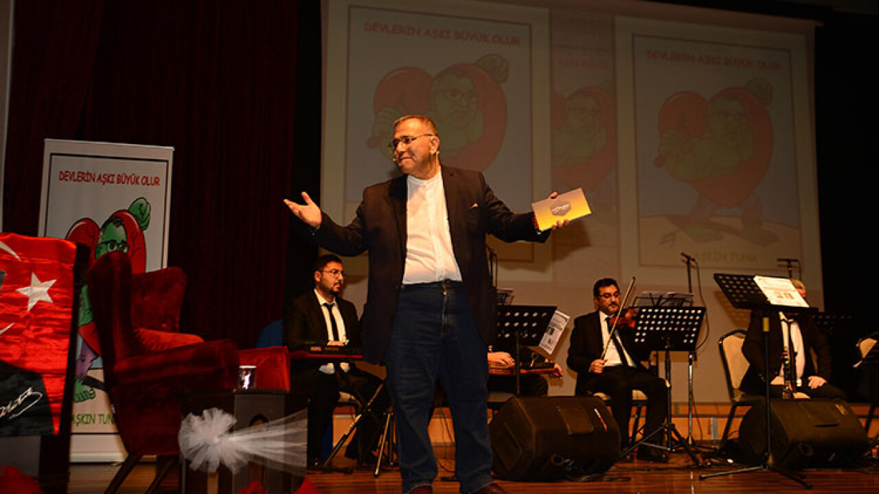 Aralarında; Devlerin aşkı büyük olur, Rüyalarda Buluşuruz, Fırtınalar, Gülü Soldurmam, Beraber Yürüdük gibi gönüllere taht kurmuş 1500'ü aşkın şarkının sözlerinde imzası bulunan Aşkın Tuna'nın yazdığı şarkıların hikayelerini anlattığı programda söz yazarının kaleme aldığı şarkılardan oluşan repertuarı TRT Sanatçısı Esra İçöz ve Pendik Bölge Hastanesi bünyesinde kurulan Türk Kalp Korosu seslendirdi. Sempatisi ve samimiyeti ile katılımcılara keyif dolu bir sohbet sunan Aşkın Tuna, programda seslendirdiği şiir performansları ile de beğeni topladı. Besteci dostları Hüsnü Üstün, Mehmet Özkaya, Kemal Külah, Talat Er'in sanatçıyı yalnız bırakmadığı gecede şarkıcı İrem Derici'nin Türkiye'nin en önemli reklamcıları arasında gösterilen babası Hulusi Derici de sahne aldı. Aşkın Tuna, çok sevdiği sahnesi ve sevenleriyle tekrar kavuşmaktan duyduğu mutluluğu dile getirirken çok yakında sahne programı ile Türkiye genelinde turneye çıkacağının da müjdesini verdi.