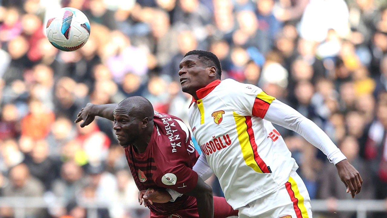 52. dakikada Hatayspor beraberliği yakaladı. Rivas'ın altıpas içerisine gönderdiği topa iyi yükselen Aboubakar, kafayla meşin yuvarlağı ağlarla buluşturdu: 1-1.