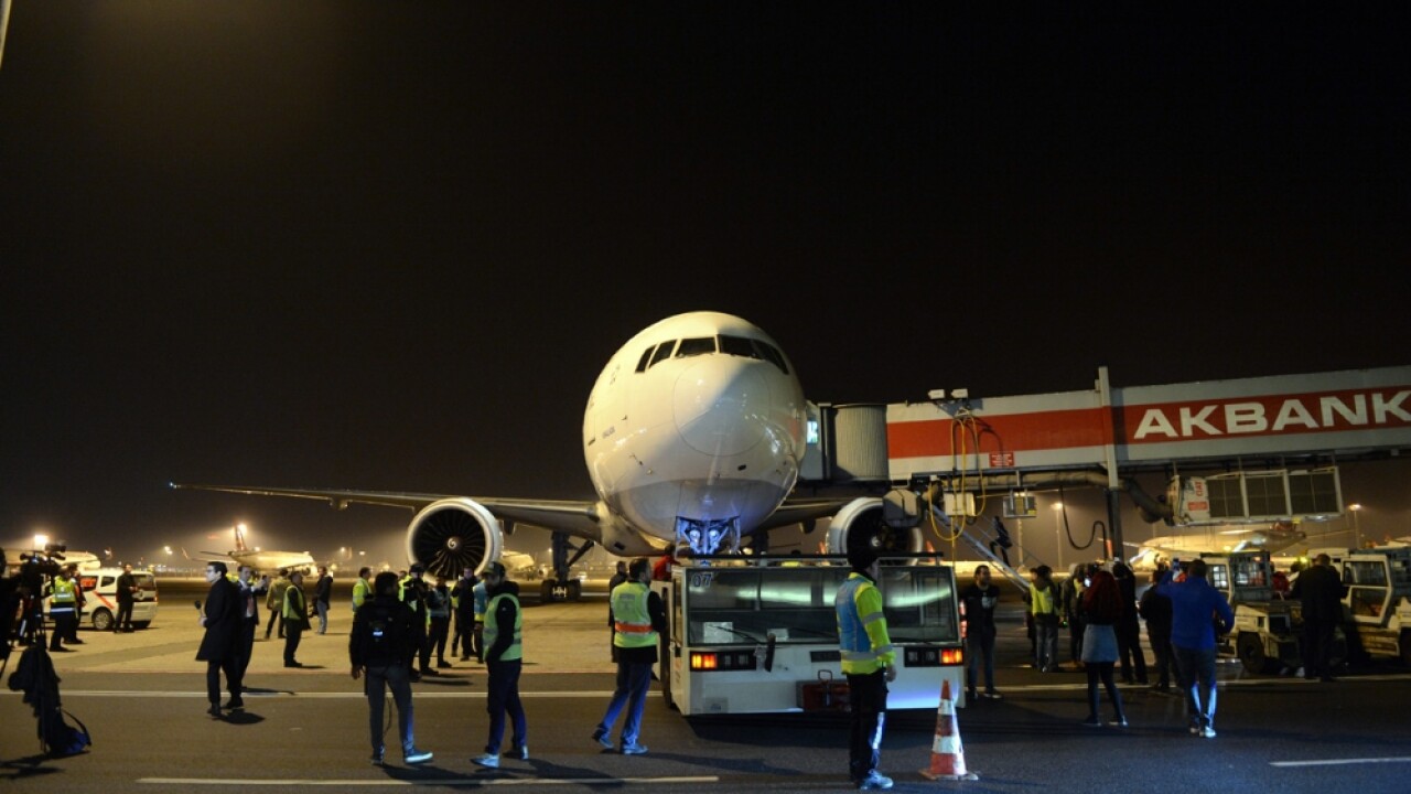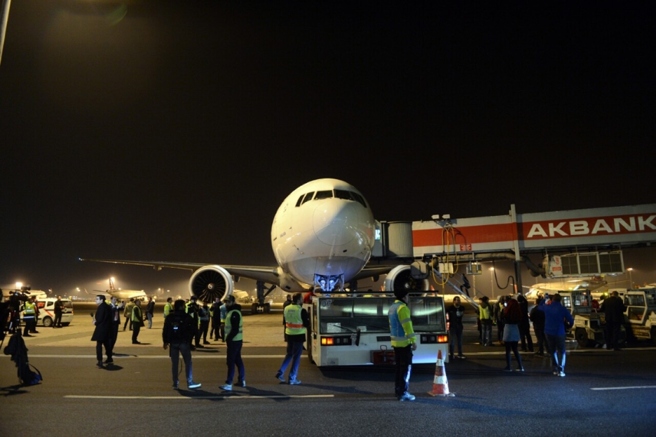 Yolcular, düzenlenen kısa veda töreninin ardından uçağa alındı.