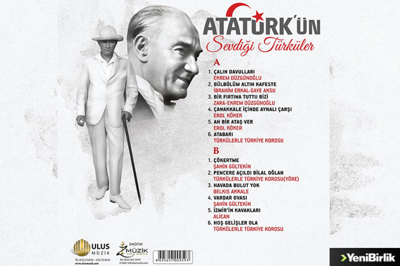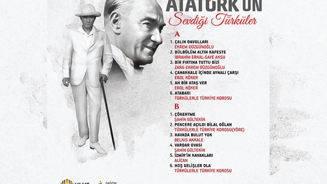 Türküleri Türk Halk Müziği’nin sevilen sanatçıları Belkıs Akkale, Ekrem Düzgünoğlu ,Şahin Gültekin, Alican, Erol Köker, İbrahim Erkal, Gaye Aksu, Zara ve Türkülerle Türkiye Korosu seslendiriyor. “Atatürk’ün Sevdiği Türküler”albümünde yer alan türküler şöyle: Çalın Davulları,Bülbülüm Altın Kafeste,Bir Fırtına Tuttu Bizi,Çanakkale İçinde Aynalı Çarşı,Ah Bir Ataş Ver,Atabarı,Çökertme,Pencere Açıldı Bilal Oğlan,Havada Bulut Yok,Vardar Ovası,İzmirin Kavakları,Hoş Gelişler Ola