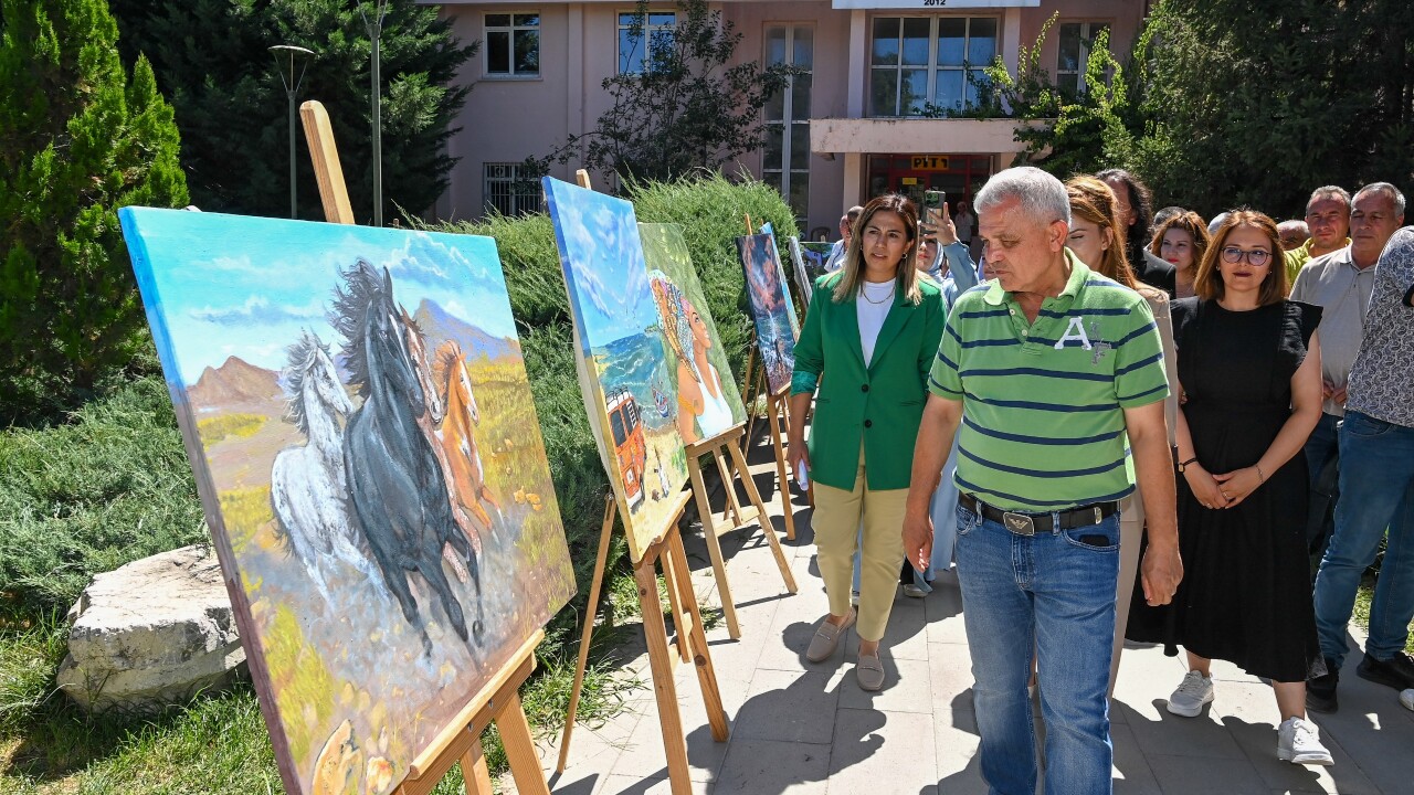 Mamak Belediye Başkanı Veli Gündüz Şahin de Lalahan Aile Merkezi’ndeki sergiyi gezdi.