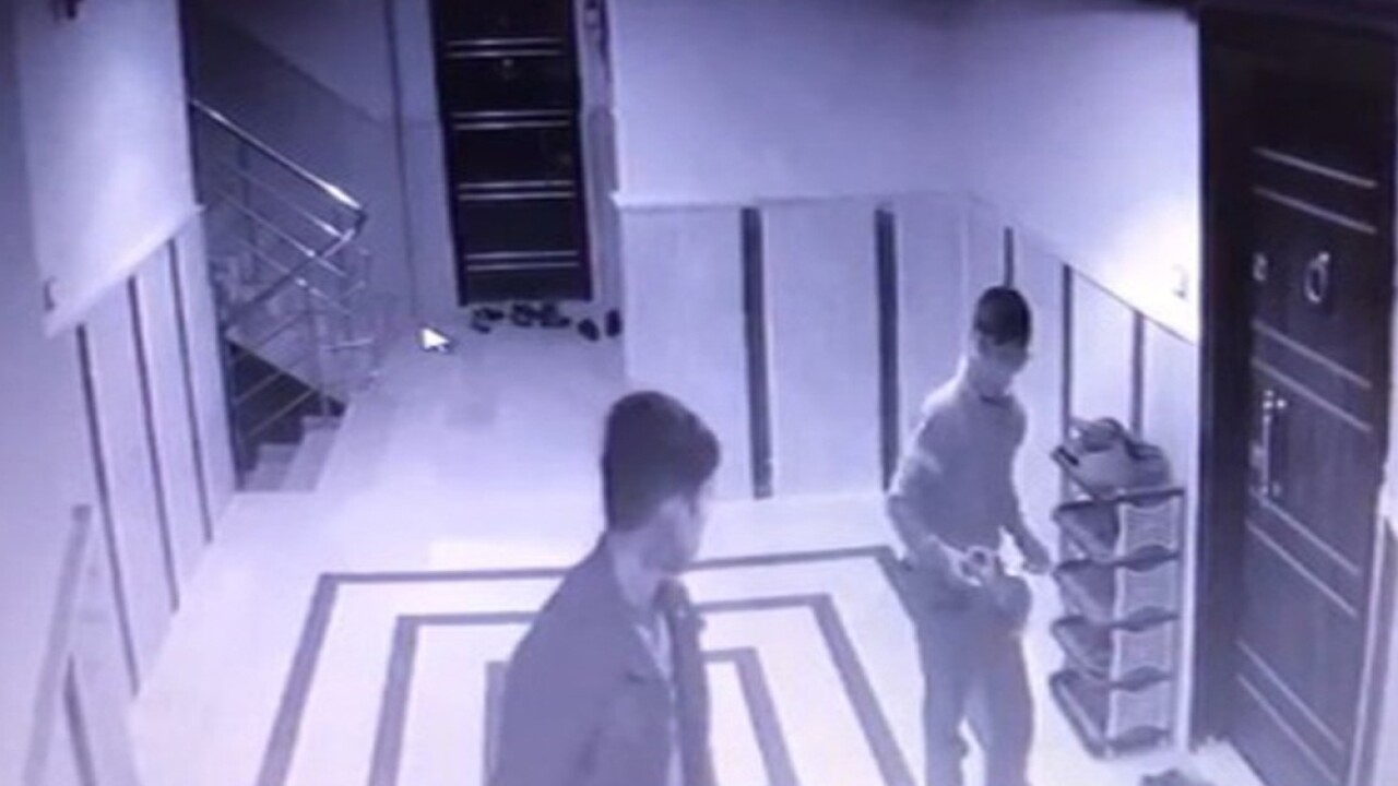 Şanlıurfa'da bir apartmana giren hırsızların ayakkabı çalma anı güvenlik kamerasına yansıdı.