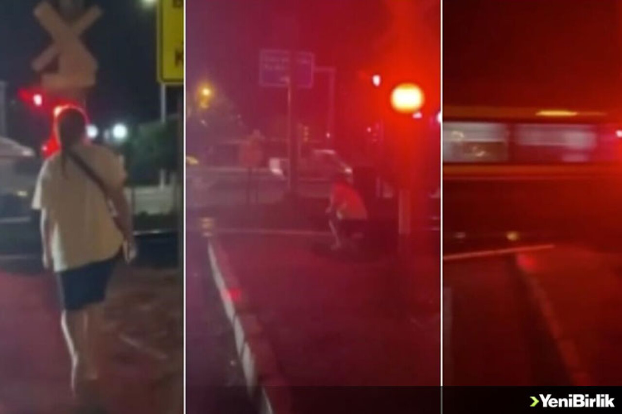 Genç kız, trenin geçişinden hemen önce bariyeri kaldırarak raylardan çekmeyi başardı. Buna rağmen trenin, bariyerin ucuna çarptığı olayda genç kızın tehlike atlattığı görüldü.