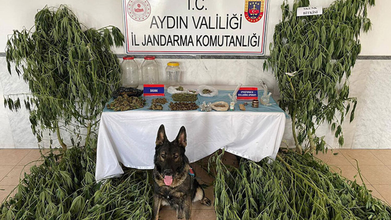 Narkotik köpeğinin de kullanıldığı aramada, 2 kilo 100 gram skunk ve 500 gram skunk tohumu ele geçirildi. Evin bahçesinde de ekili halde 82 kök skunk bitkisi bulundu.