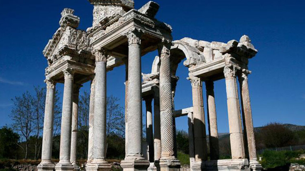 Aydın'ın Karacasu ilçesinde bulunan, geçmişi 7 bin yıl öncesine uzansa da en ihtişamlı devrini Roma döneminde yaşamış olan Afrodisyas, antik çağda aşkın ve güzelliğin tanrıçası olarak tanımlanan Afrodit'e adanmış kentler arasında en ünlüsü olarak biliniyor.