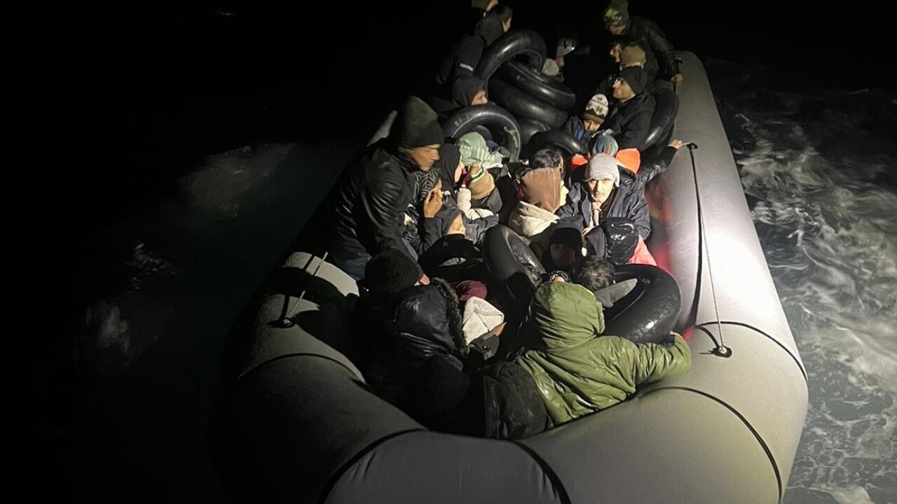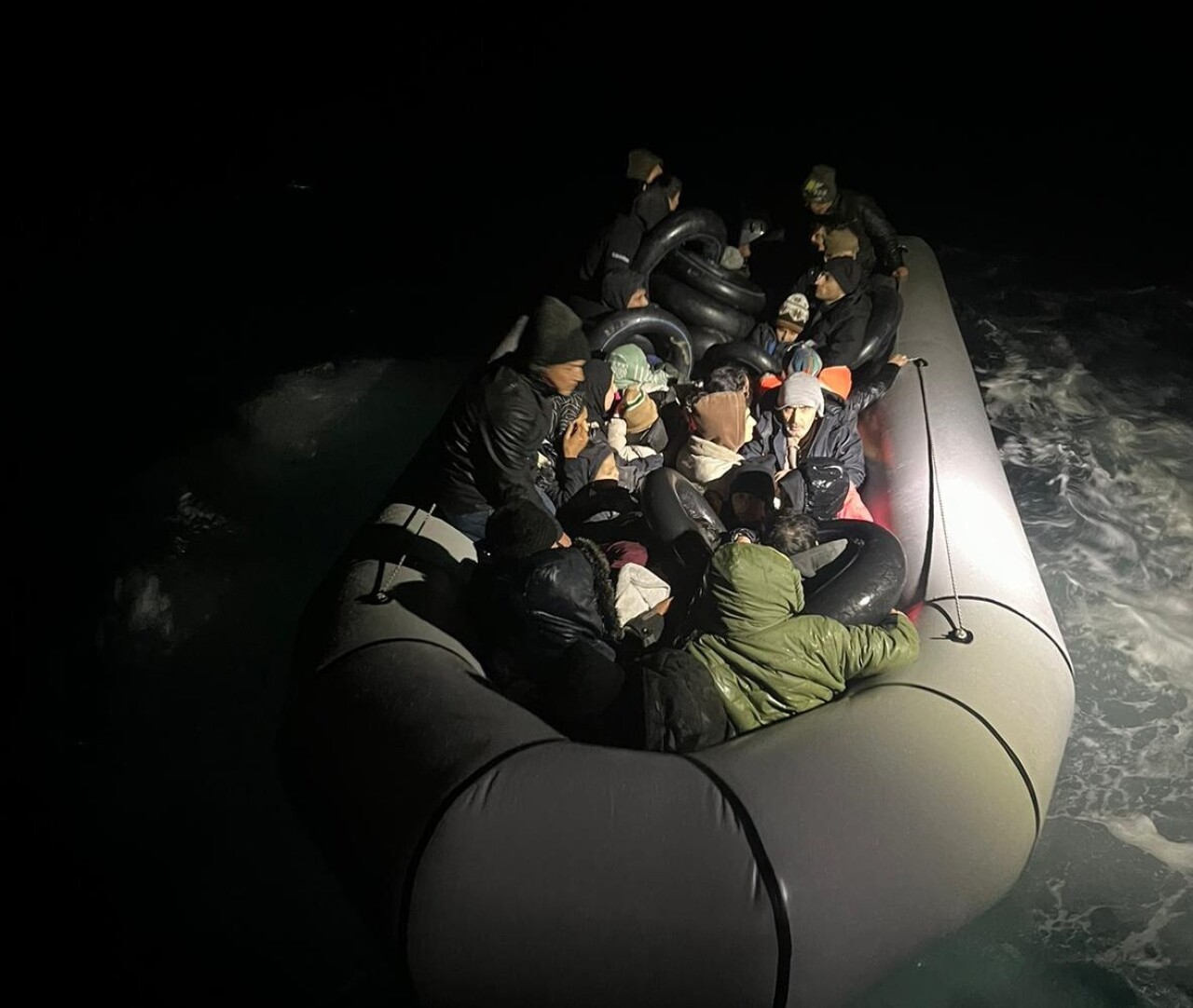 Bölgeye doğru Sahil Güvenlik botu "KB-32" ile harekete geçen ekipler, Midilli Adası'na gitmeye çalışan bottaki 19'u çocuk 40 düzensiz göçmeni yakaladı.