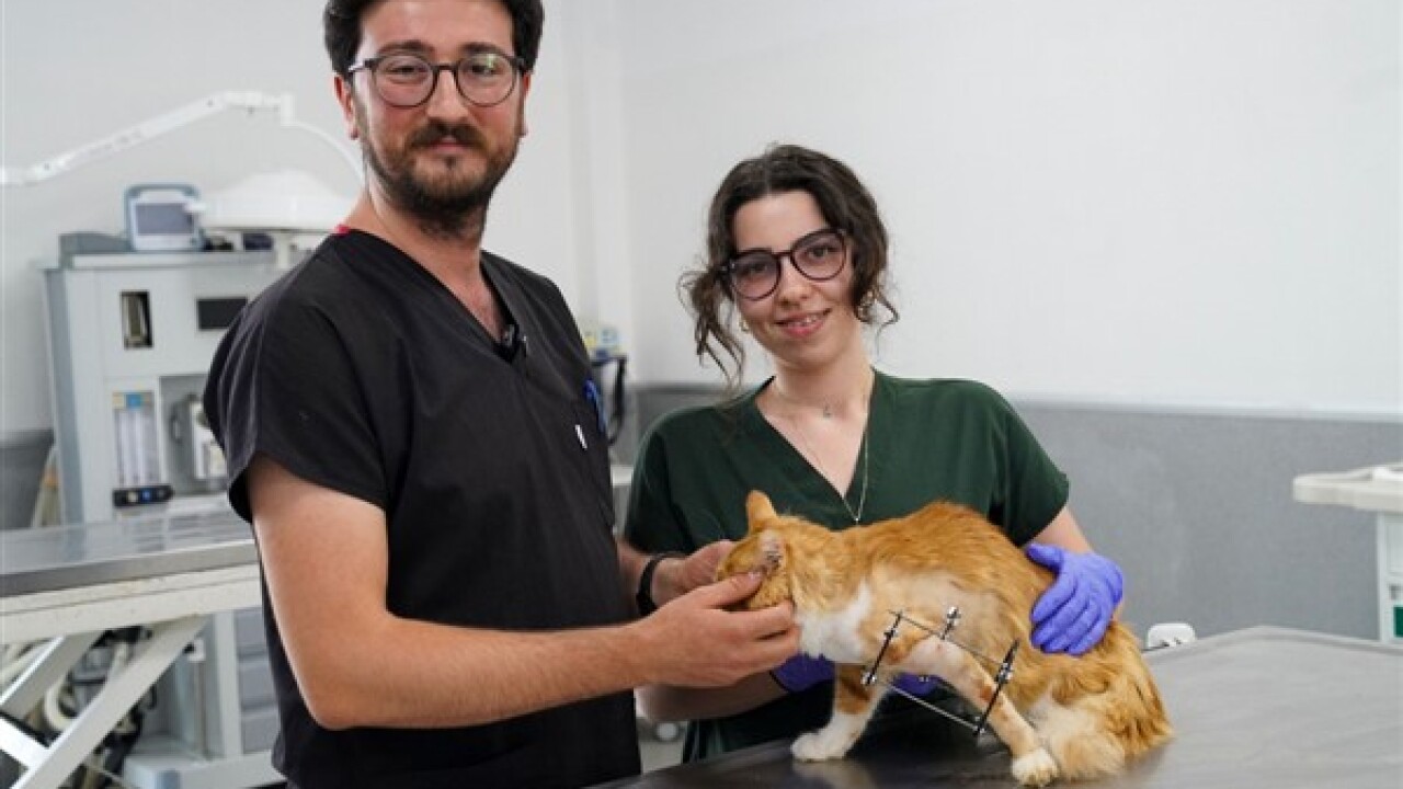 Bacağı başarılı bir operasyonla kesilmekten kurtarılan kediye özel bir aparat takıldı. Veterinerlerin Balım ismini verdiği sevimli kediye tedavinin ardından yuvasını açacak bir aile aranıyor.