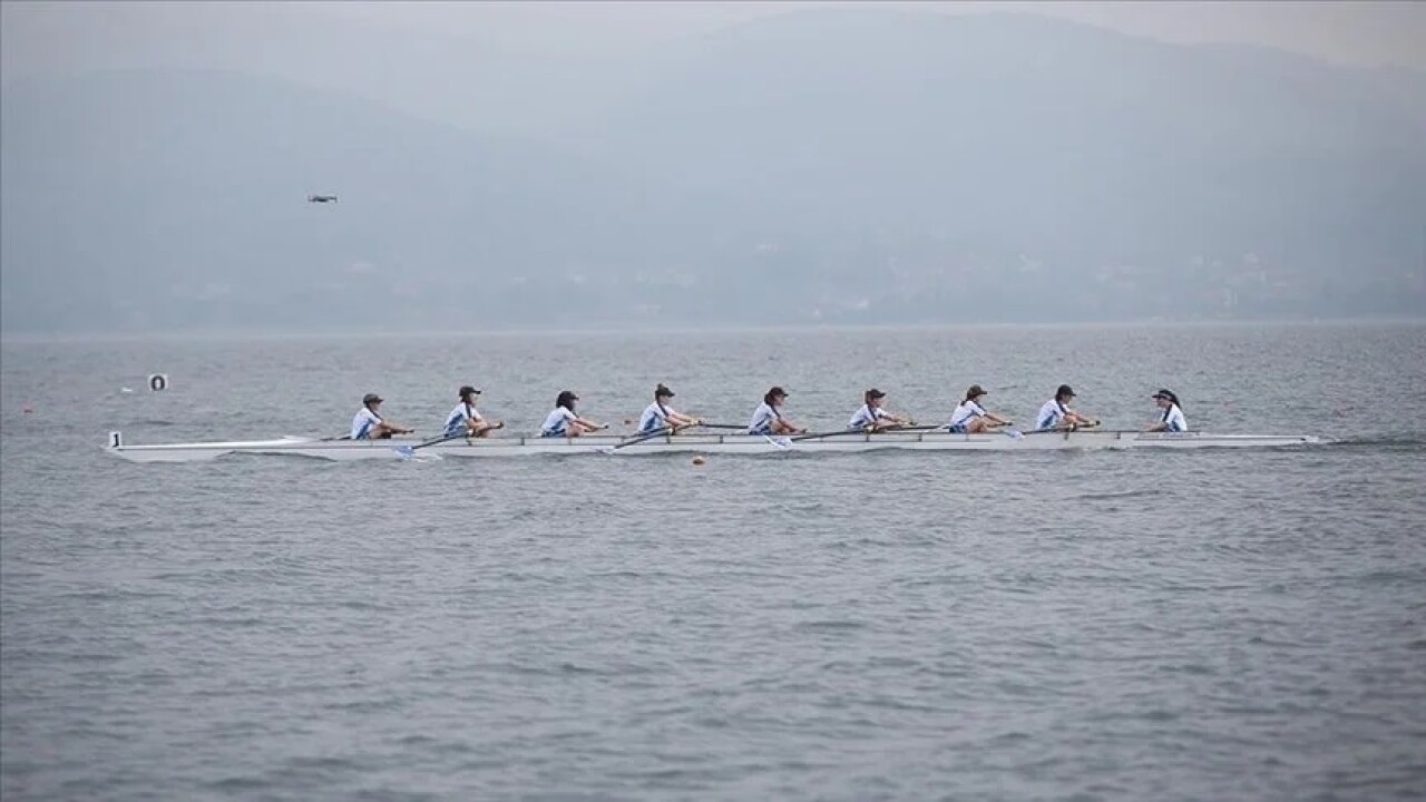 Takım arkadaşları tarafından kıyıdan desteklenen sporcular, 1000 ve 2 bin metrede kürek çekti.
