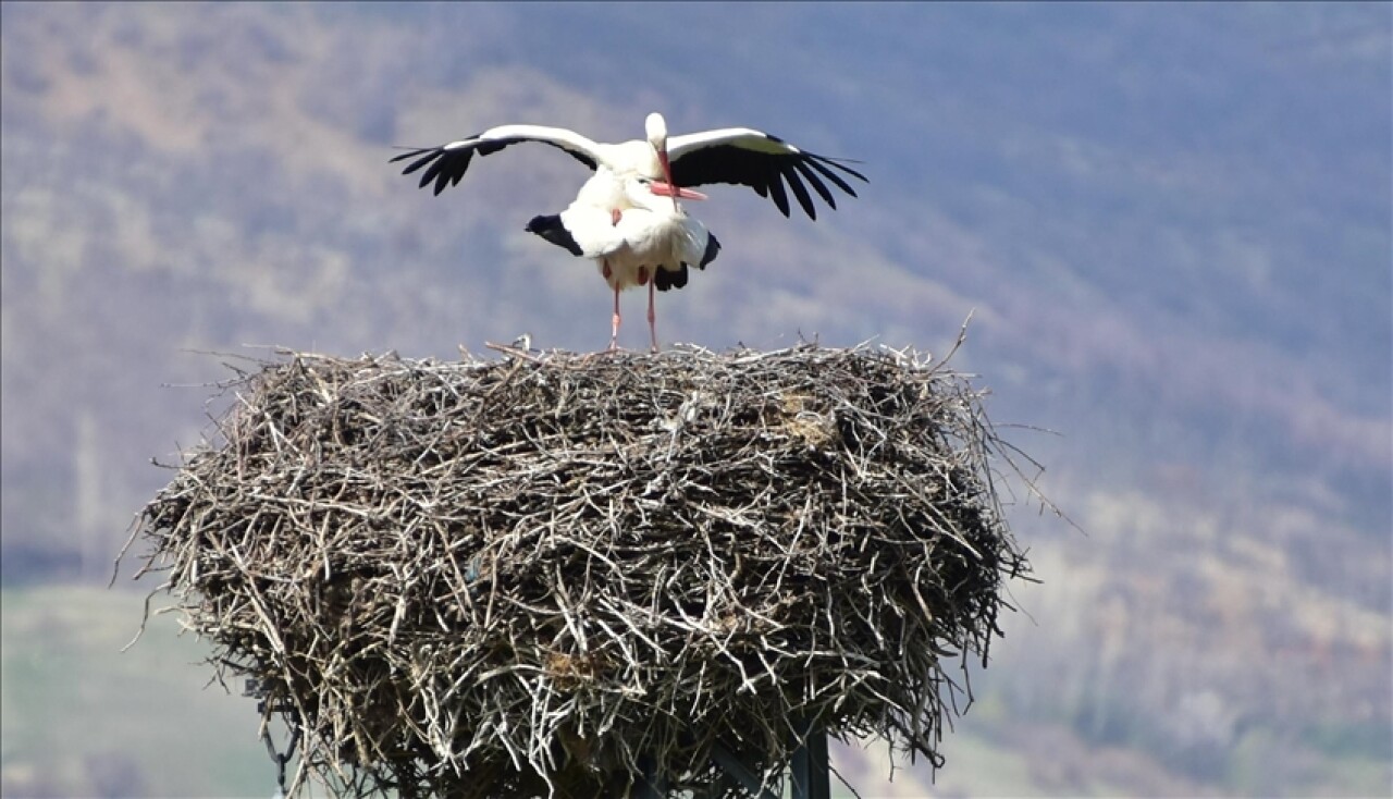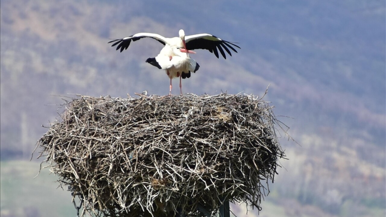 Her yıl ilkbahar aylarında il merkezindeki bazı bina çatılarındaki yuvalarına gelen leylekler, yaz mevsimini geçirecekleri yuvalarının yapımına başladı.