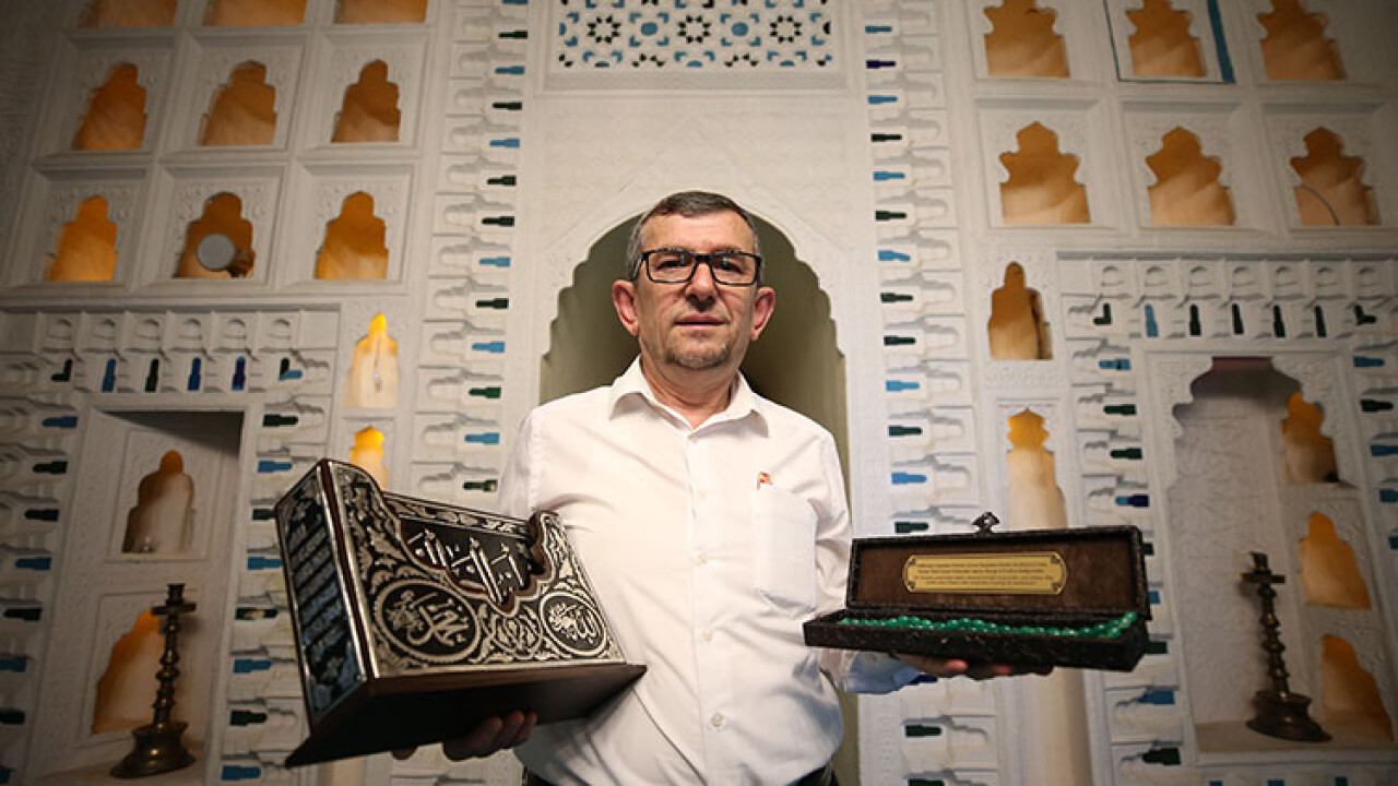 Müezzin Uyar'a Kur'an-ı Kerim ile 18. yüzyılın sonlarından kalma Osmanlı katalin malzemesi kullanılarak işin ustası Hasan Güler tarafından el emeğiyle üretilen tespihi ulaştıran Bahçeli, müezzini telefonla arayıp tebrik etti.