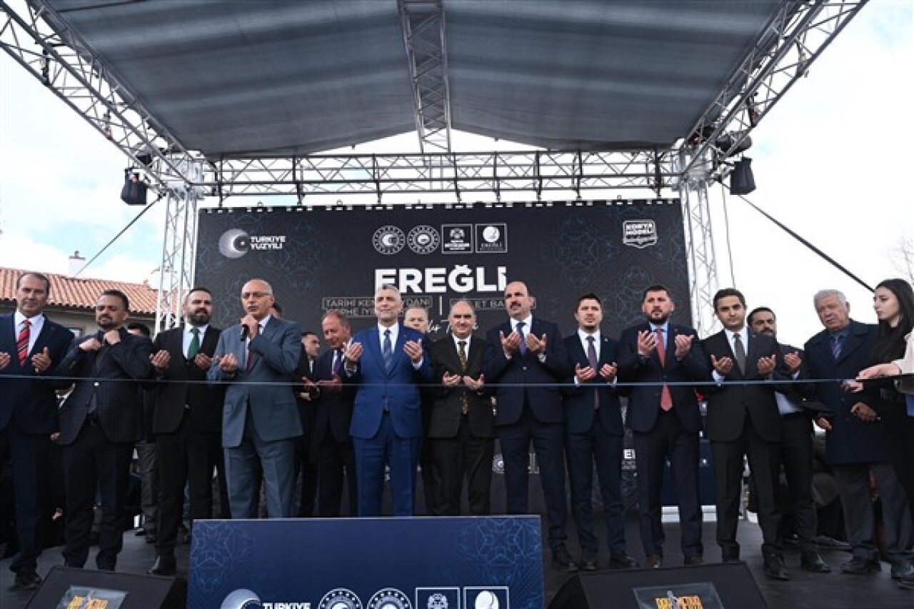 Konya Büyükşehir Belediye Başkanı Uğur İbrahim Altay ise Ereğli’ye her geldiklerinde heybeleri dolu geldiklerini belirterek, “Geçen geldiğimizde 8 halı sahanın açılışını gerçekleştirmiştik. Çarşamba günü eski adliye binasının bulunduğu yerde gençlerimize, öğrencilerimize hizmet edecek Bilgehanenin temelini attık. Bugün Ereğli’ye kazandırdığımız cephe ağlıklaştırmasının açılışını gerçekleştiriyoruz. Bitmedi, inşallah Salı günü Ereğli Belediye Başkanımız ve protokolün katılımıyla Kamyon Garajı’nın da temelini atmış olacağız." dedi.
