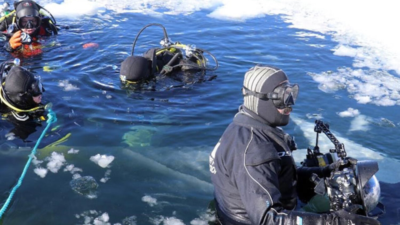 İstanbul'dan gelen Su Altı Fotoğrafçıları ve Filmcileri Derneğinden dalgıçlar da suyun yüzeyinde bir metreyi bulan buzların kırılmasıyla hazırlıklarını yapıp suya daldı.