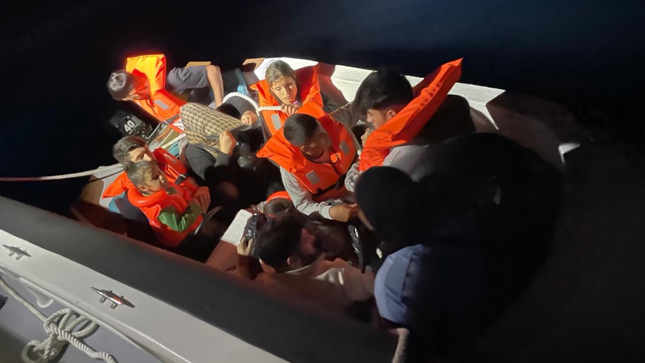 Ekipler, Midilli Adası'na gitmeye çalışan tekneyi durdurdu ve aralarında 3 çocuğun bulunduğu 11 düzensiz göçmeni yakaladı.