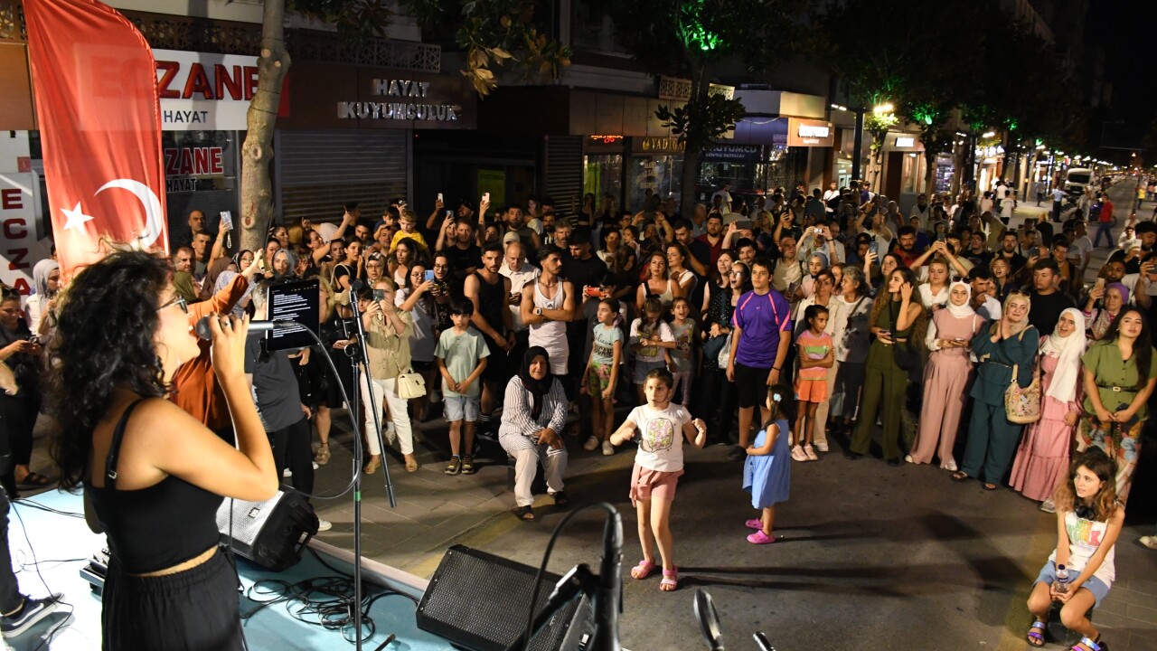 Balıkesir’in en işlek caddelerinden biri olan Milli Kuvvetler Caddesi’ni, hafta sonları 11.00-23.00 saatleri arasında araç trafiğine kapatılıyor. Caddenin girişine sahne kurularak Büyükşehir Belediyesi Konservatuvarı'nın sanatçıları; Ezgi Abacı, Metin Durgutlu, Cihangir İncemen ve Umut Ayral tarafından bir konser gerçekleştirildi.