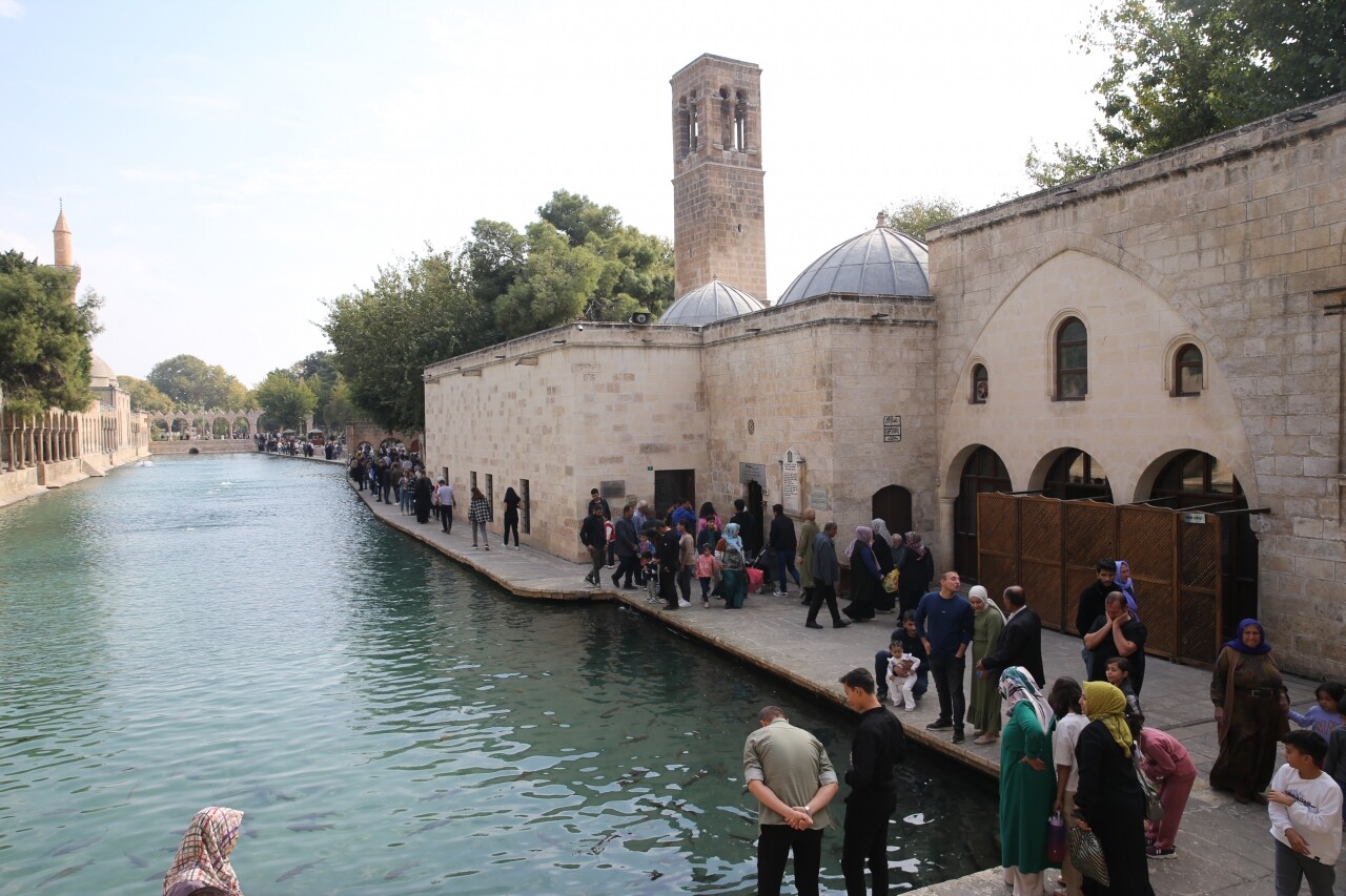 Hafta sonu tatilinde Şanlıurfa'ya gelen misafirler, dünyanın "en büyük doğal akvaryumu" olarak bilinen ve inanç turizminde önemli bir yere sahip olan tarihi mekanı ziyaret ediyor.