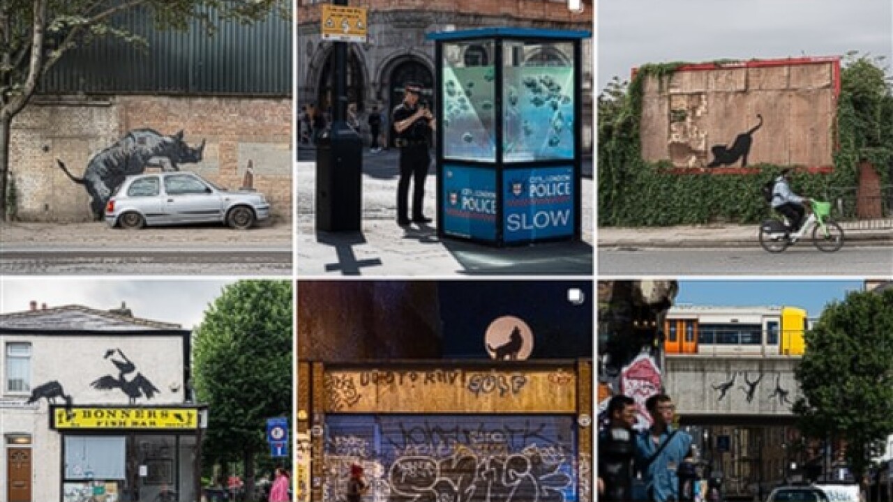Genellikle eserlerinin ortaya çıkmasının arasında aylar geçmesiyle bilinen Banksy'nin bugün İngiltere'de sekiz gün içinde sekizinci yeni çalışması ortaya çıktı. Yeni eser Park halindeki bir arabaya tırmanan bir gergedanı tasvir ediyor.