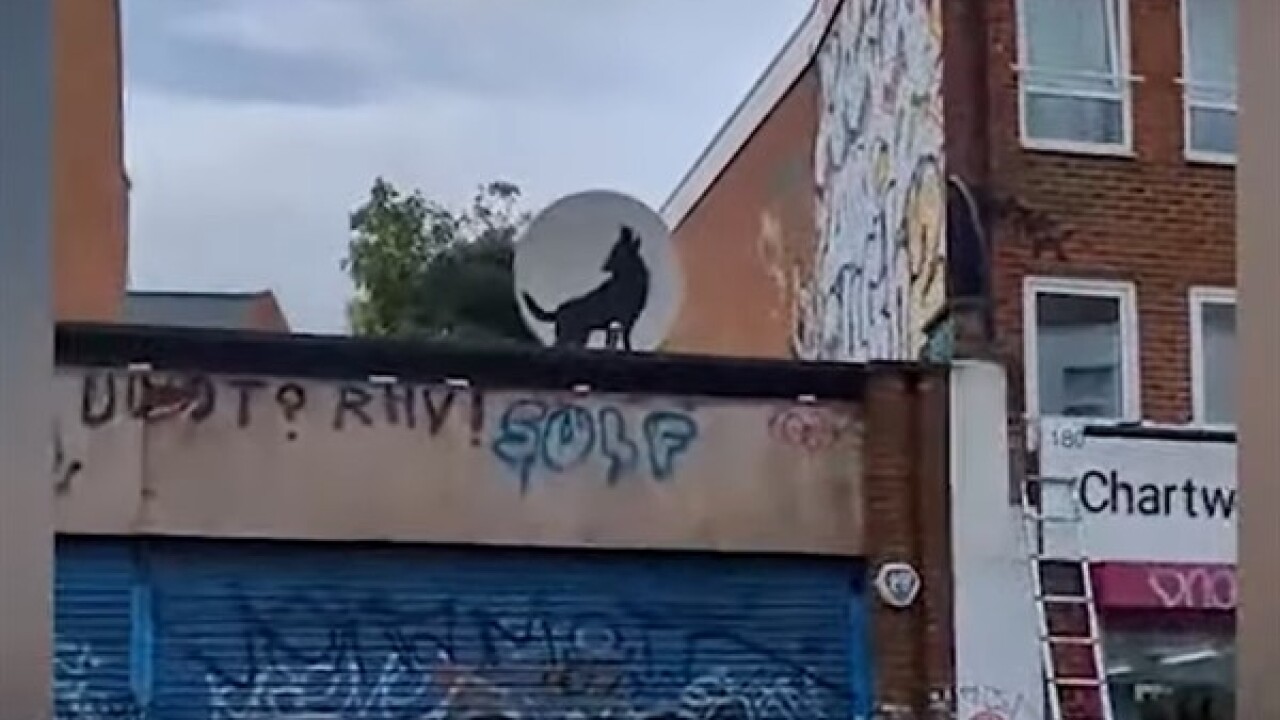 Son eser, Londra'nın güneydoğusundaki Peckham'da bulunan Rye Lane'deki bir binanın tepesinde uydu anteni gibi görünen bir yere boyanmış, gökyüzüne doğru uluyan bir kurt şablonuydu.