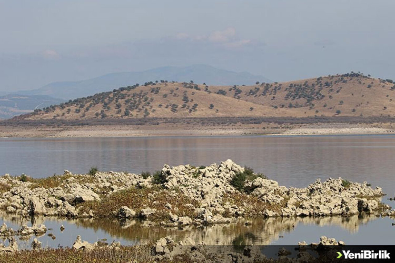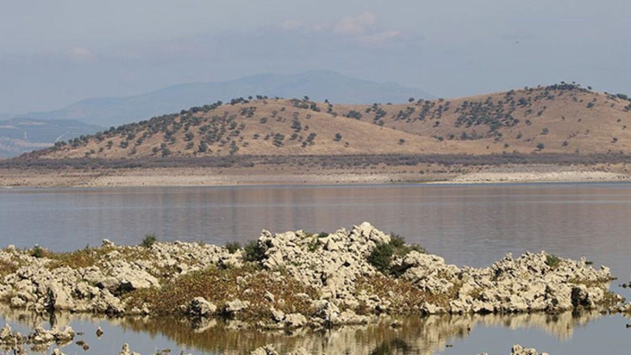 Manisa'nın Salihli ilçesinde bulunan Demirköprü Barajı'nda sular çekilince "lav kalıntıları" ortaya çıktı.