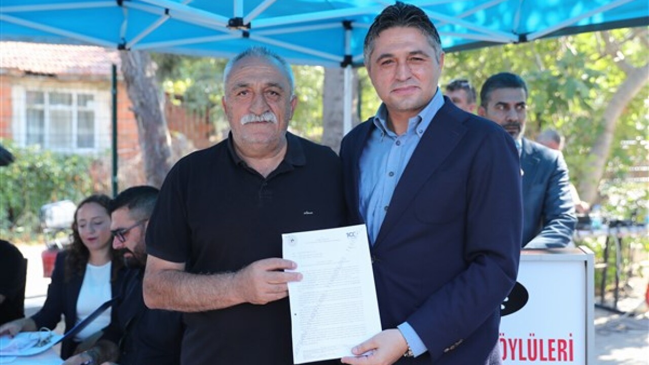 Aliağa’nın Kültür Mahallesi Cici Sokak’ta 45 yıldır süregelen mülkiyet sorunu daha önce orman arazisi olan, sonrasında ise yapılan çalışmalarla 2B statüsüne alınan 134 taşınmazın tapu alımına esas tebligatları gerçekleştirilen programla hak sahiplerine dağıtıldı.
