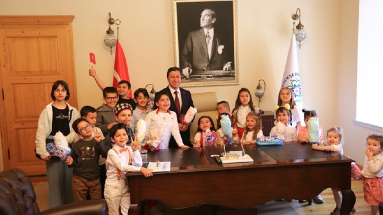 Başkan Aras, Yenice İlköğretim Okulu 2.sınıf öğrencisi Ziya Alabaz'a makamını teslim etti.