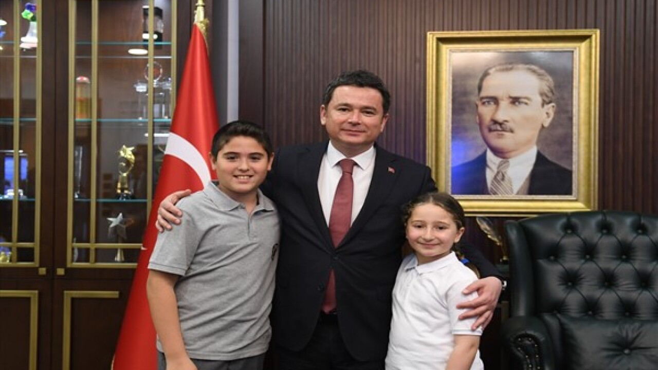 Osmangazi Belediye Başkanı Erkan Aydın, 23 Nisan Ulusal Egemenlik ve Çocuk Bayramı dolayısıyla koltuğunu, Şehit Jandarma Uzman Çavuş İlyas Genel İlkokulu 3. sınıf öğrencisi Zeynep Aktaş ile Kükürtlü Ticaret ve Sanayi Odası İlkokulu 4. Sınıf öğrencisi Can Yardımcı’ya bıraktı.
