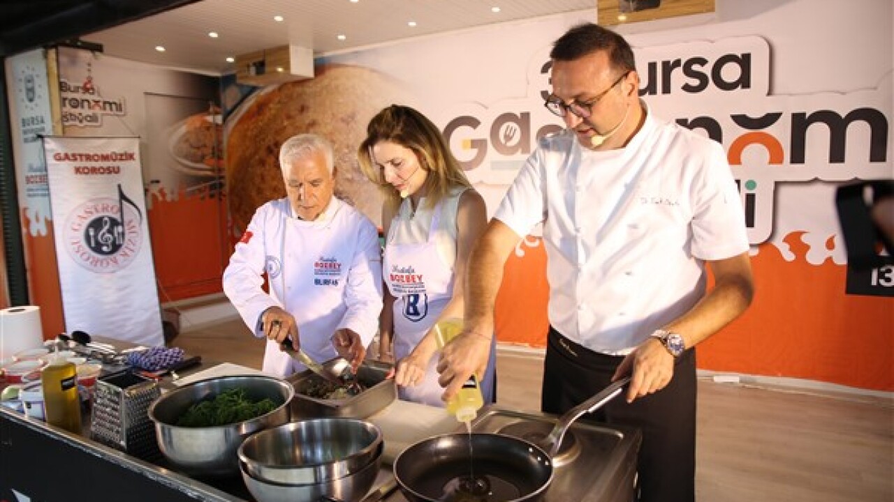 Şef Dr. Esat Özata ile birlikte şef önlüklerini giyerek mutfağa giren Başkan Bozbey ve eşi, tüm malzemeleri Bursa'da yetiştirilen ve üretilen ürünleri kullanarak kestaneli mücver yaptı. Programda, Başkan Bozbey tarafından kestaneli mücverin püf noktaları da anlatıldı.