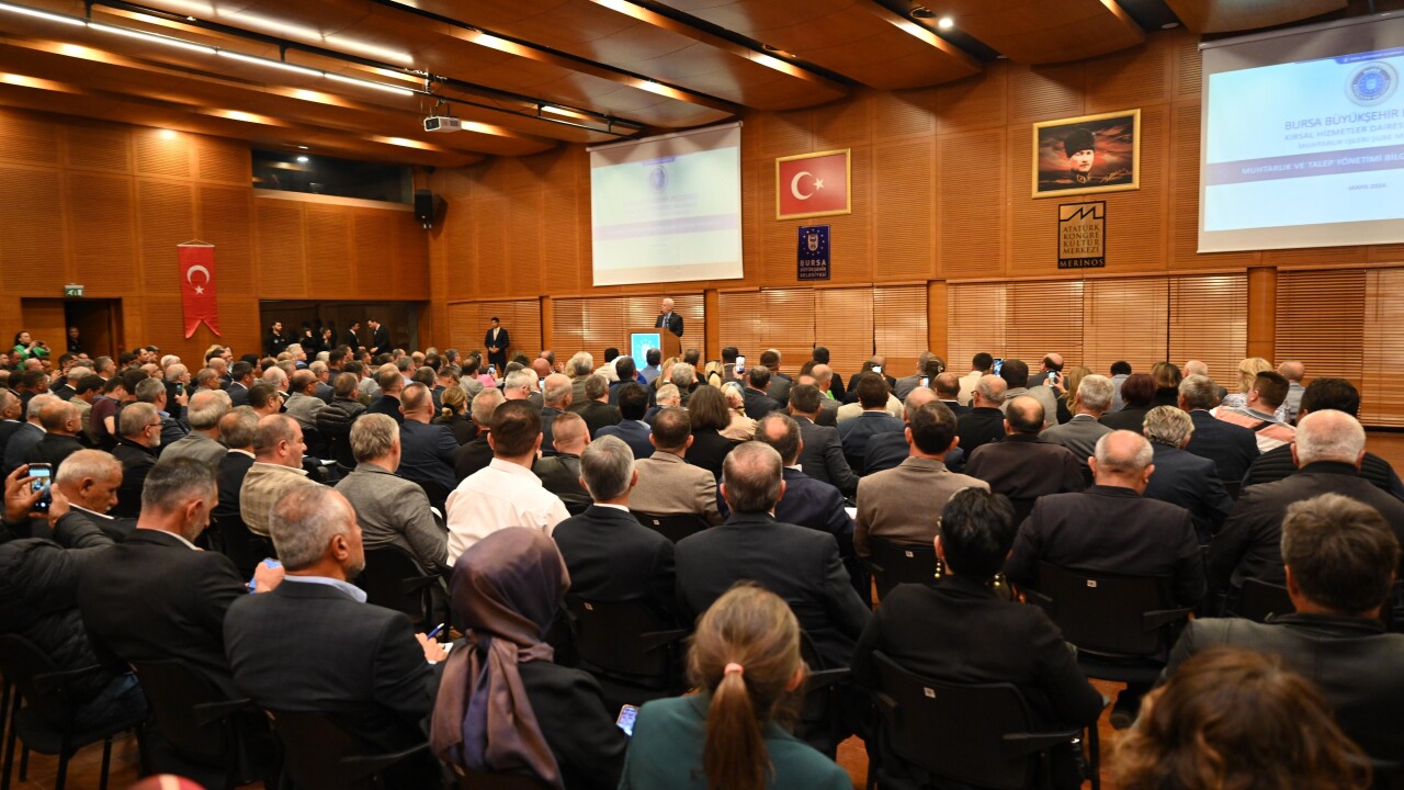 Merinos Atatürk Kongre Kültür Merkezi’ndeki programda, vatandaşların taleplerinin hızlıca karşılanması ve sorunlarına anında çözüm üretilmesi amacıyla büyükşehir belediyesi yöneticileri tarafından muhtarlara bilgi verildi.