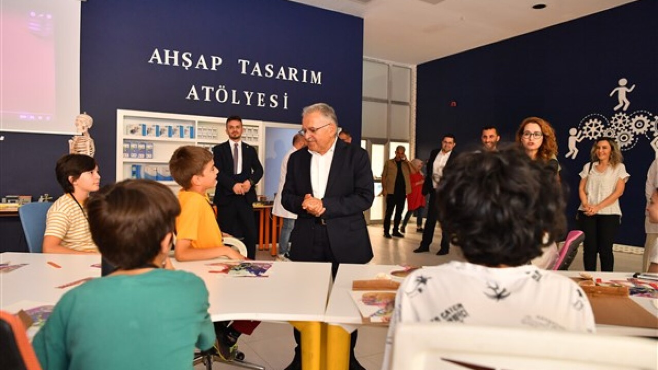 Başkan Büyükkılıç, sıcak ve samimi ortamda çocuklarla buluşurken, minikler robotik kodlama, maket uçağı, lego, resim ve teleskop gibi birbirinden önemli eğitimler aldıklarını anlattılar.