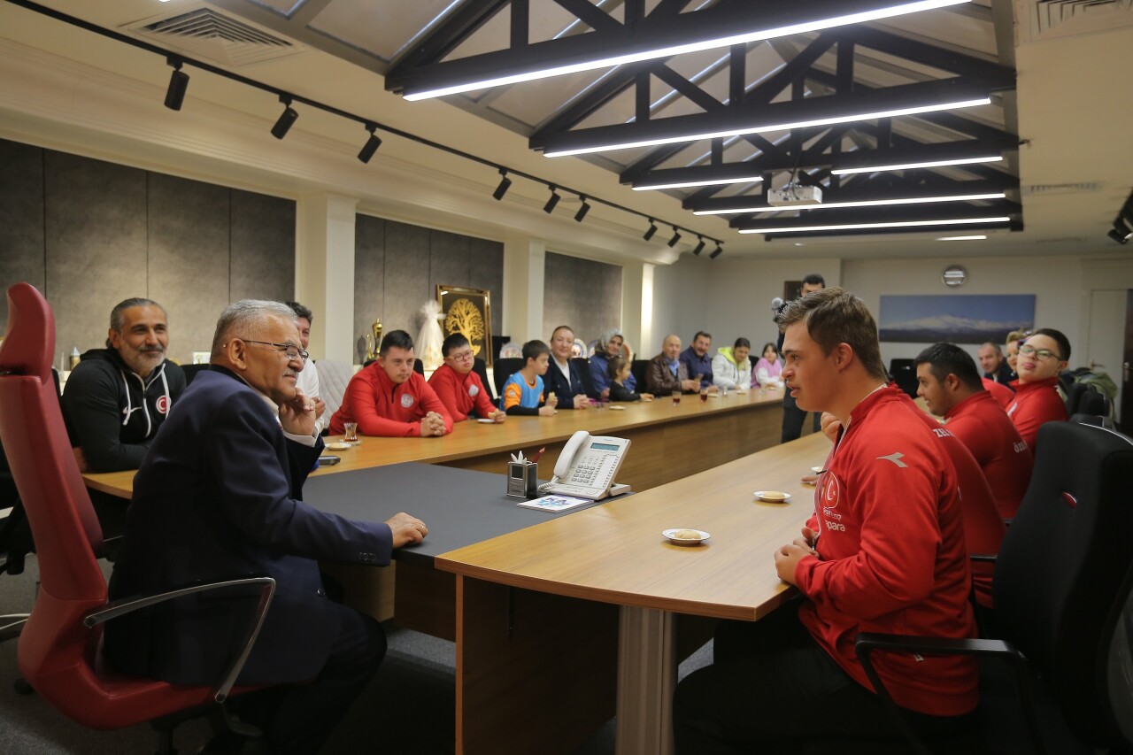 Sporcular ayrıca, Başkan Büyükkılıç’ı yeniden Kayseri Büyükşehir Belediye Başkanı seçilmesinden dolayı tebrik ederek, yeni dönemin hayırlı olması temennisinde bulundu.