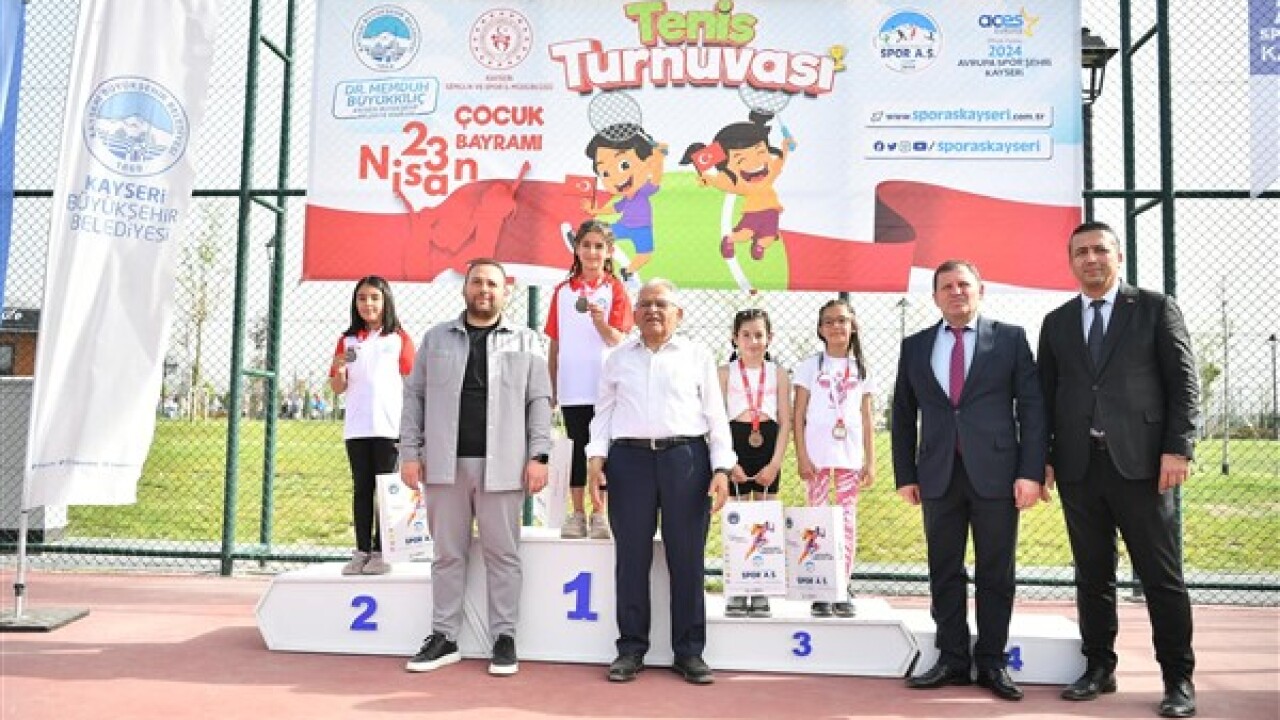 Kayseri Büyükşehir Belediye Başkanı Memduh Büyükkılıç, Recep Tayyip Erdoğan Millet Bahçesi'nde yeni hizmet vermeye başlayan Tenis Kortu'nda düzenlenen 23 Nisan Ulusal Egemenlik ve Çocuk Bayramı Tenis Turnuvası'nda dereceye giren çocuklara madalyalarını verdi.