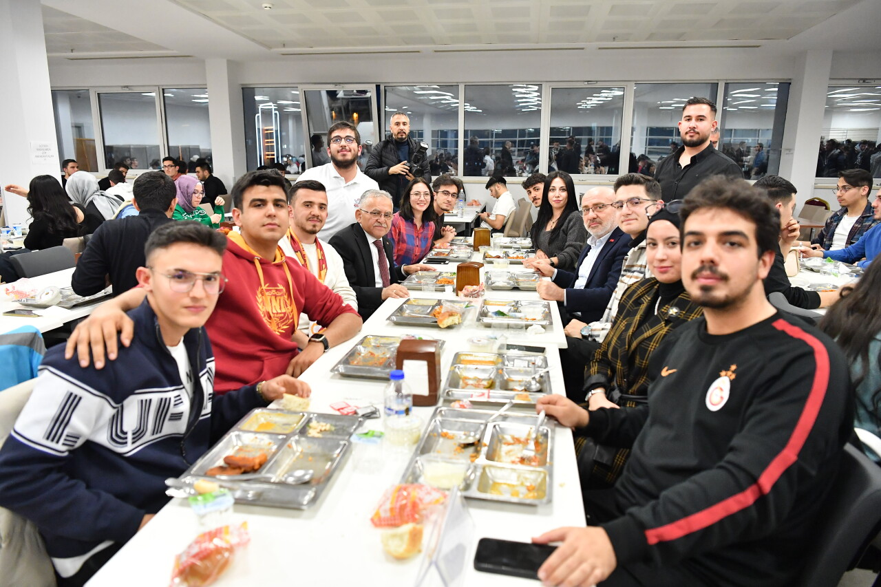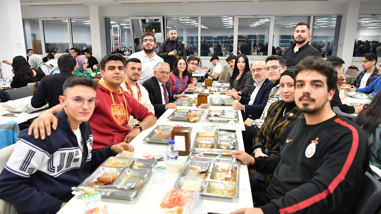 Başkan Büyükkılıç, bu kez Kayseri Üniversitesi ev sahipliğindeki iftar yemeğinde öğrencilerle bir araya geldi.