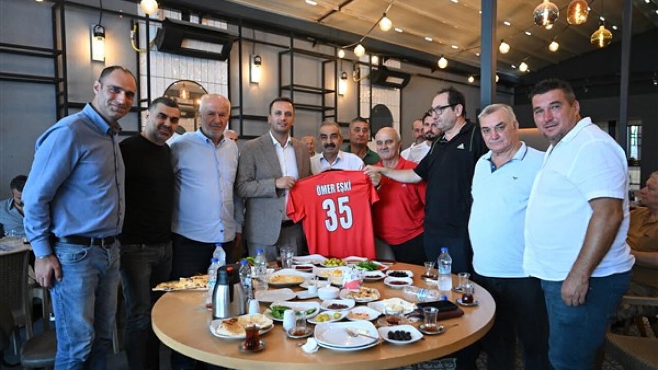 Toplantının sonunda Başkan Eşki’ye, İzmir Amatör Spor Kulüpleri Başkanı Efkan Muhtar tarafından isminin yazılı olduğu 35 numaralı forma hediye edildi.