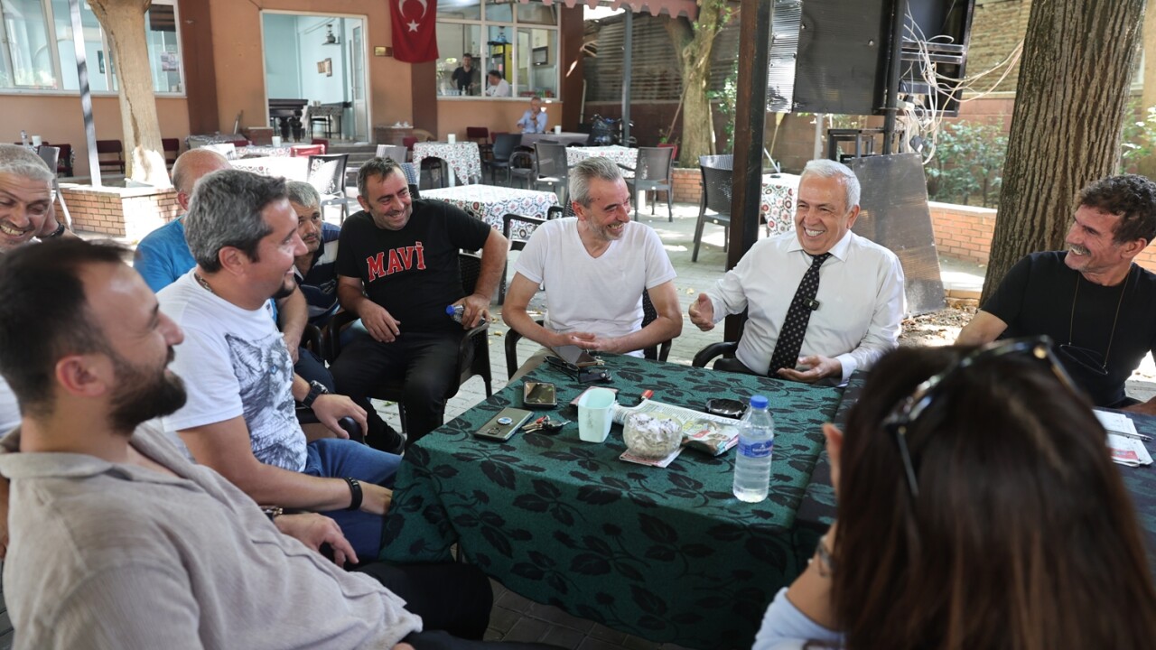 Başkan Şadi Özdemir, Demirci Mahallesi’ndeki kahvede vatandaşlarla buluştu. Vatandaşların talep ve önerilerini dinleyen Başkan Şadi Özdemir, “Sizlerin düşünceleri, izlenimleri bizler için çok değerli. Sizler sorunlarınızı iletin, bizler de çözüm üretelim. Sonuç olarak hizmet etmek için bu göreve geldik.” dedi.