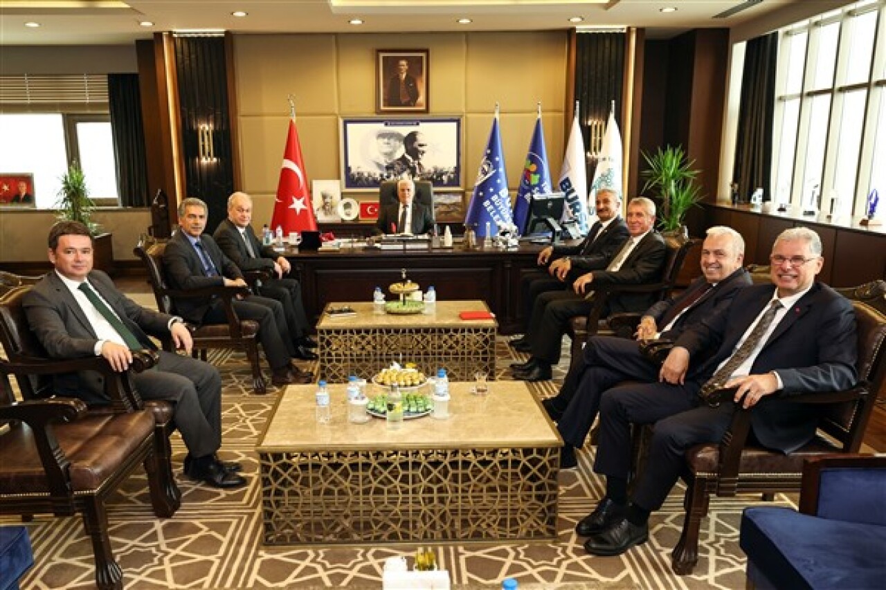 Nilüfer Belediye Başkanı Şadi Özdemir ve CHP’li belediye başkanlarının resmi ziyaretler çerçevesindeki bir sonraki durağı, Bursa Büyükşehir Belediye Başkanı Mustafa Bozbey’in makamı oldu. CHP Bursa İl Başkanı Nihat Yeşiltaş’ın da yer aldığı ziyarette, Başkan Şadi Özdemir ile diğer ilçe belediye başkanları, kendi bölgelerinde yapacakları projeleri, Bursa Büyükşehir Belediye Başkanı Mustafa Bozbey’e aktardı.