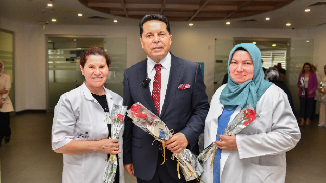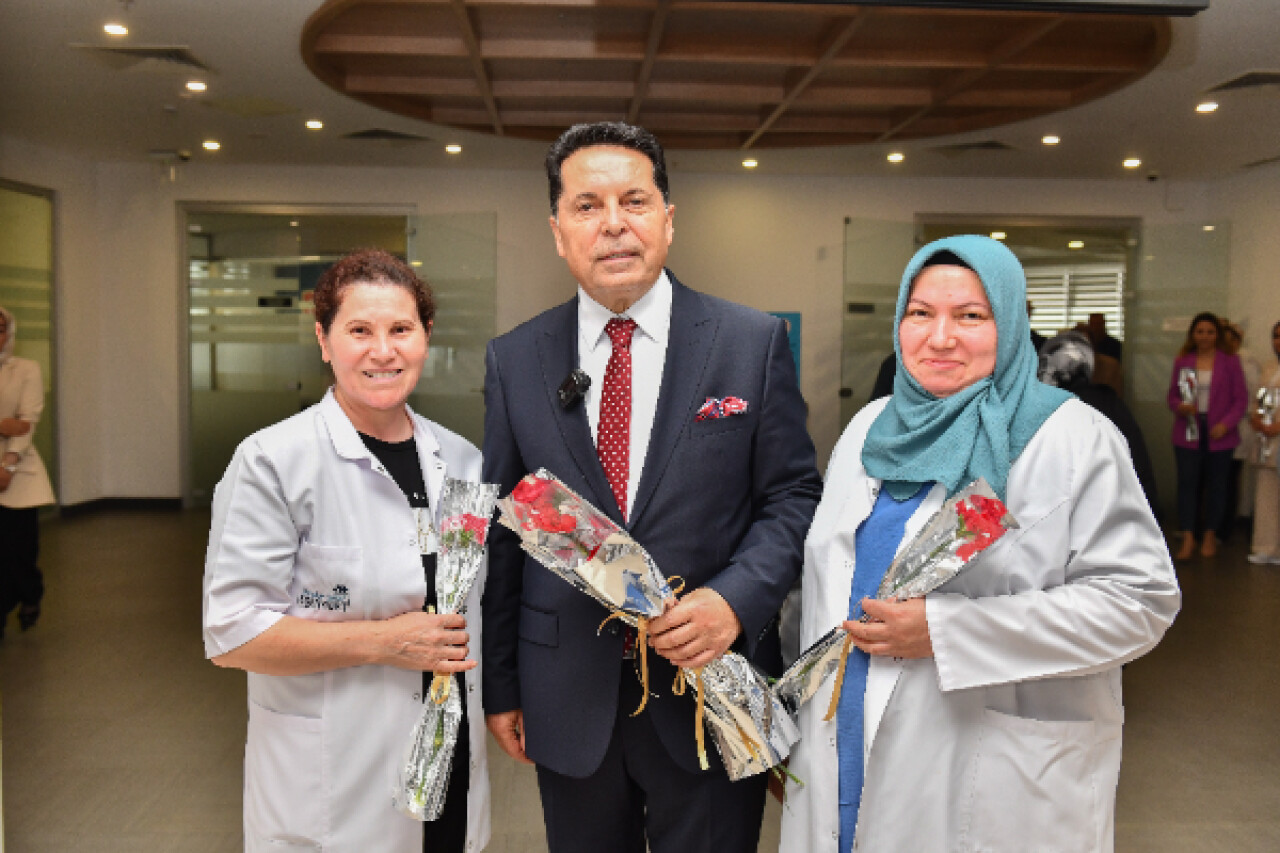 Başkan Özer, birimleri tek tek gezerek hem annelerin ve anne adaylarının bu en özel gününü kutladı hem de onlara çiçek takdim etti.