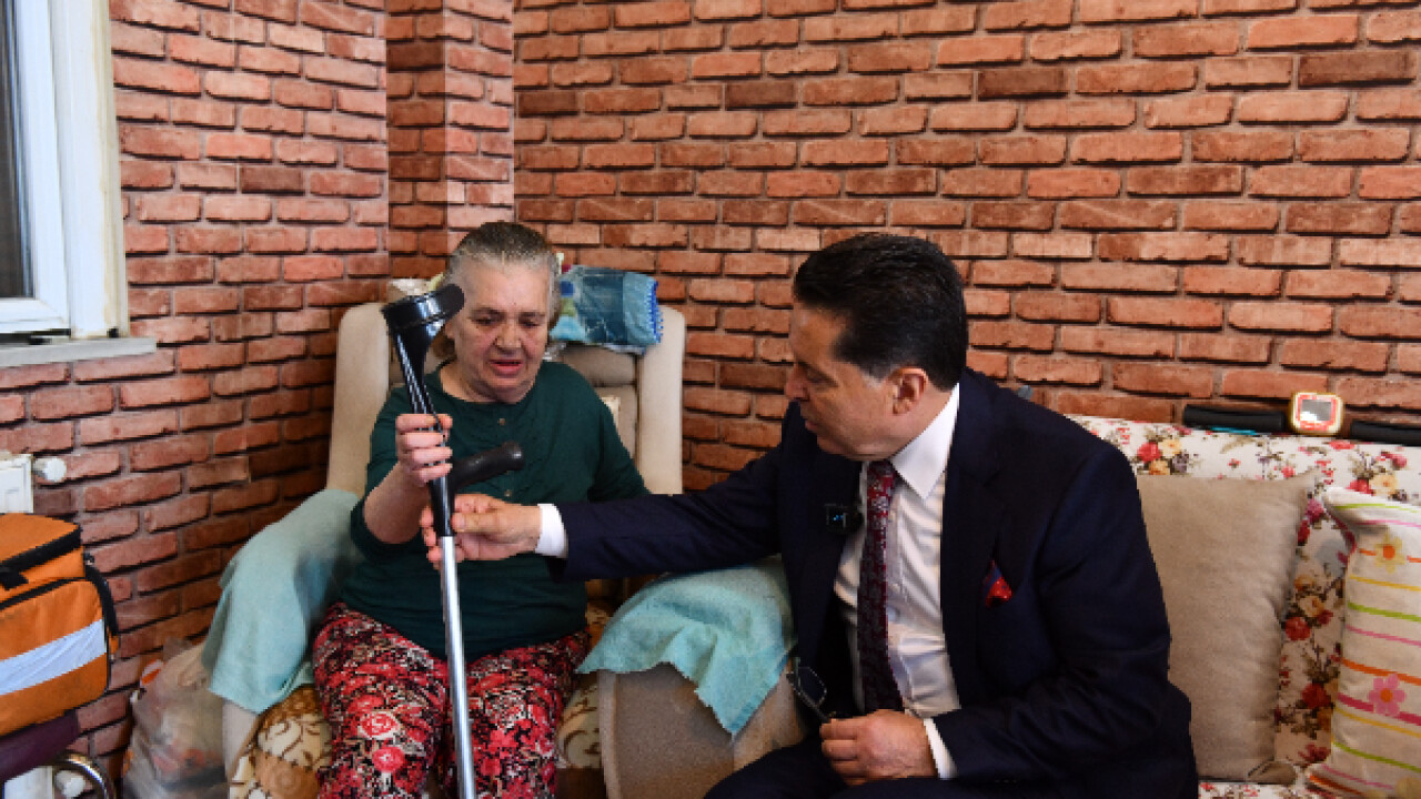 Başkan Özer, desteksiz yürümekte zorlanan Sebahat Pelin'in evine giderek hem geçmiş Anneler Günü'nü kutladı hem de baston hediye etti.