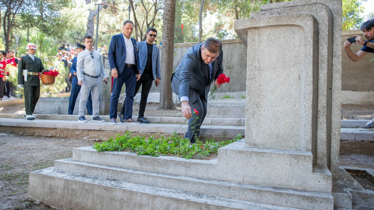Saygı duruşunda bulunulması ve İstiklal Marşı'nın okunmasının ardından şehitler için dua edildi. Duaların ardından İzmir Büyükşehir Belediye Başkanı Başkan Tugay, şehitlerin kabrine kırmızı karanfil bıraktı.