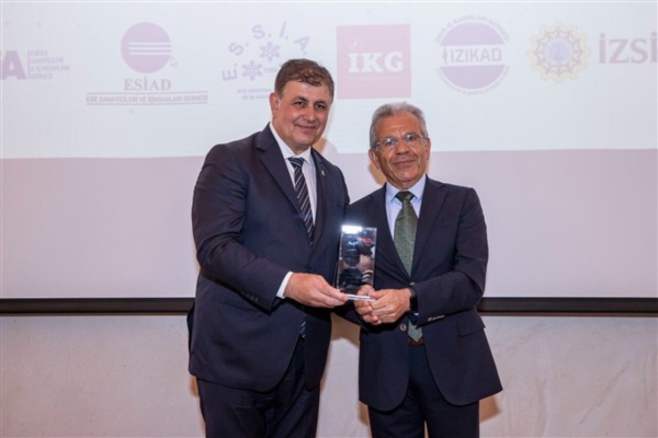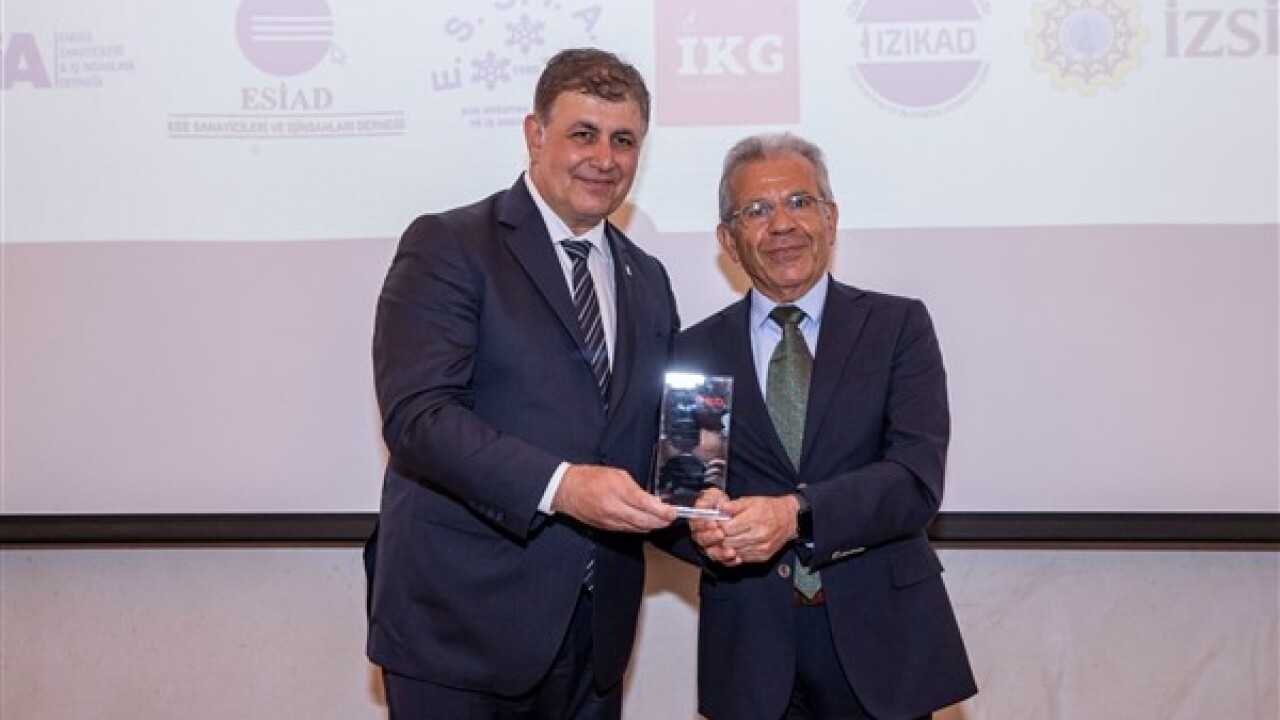 Başkan Tugay, 3 yıl BASİFED Yönetim Kurulu Başkanlığı yapan ardından bayrağı Semiha Güneş'e devreden Mehmet Ali Kasalı'ya törende plaket takdim etti.