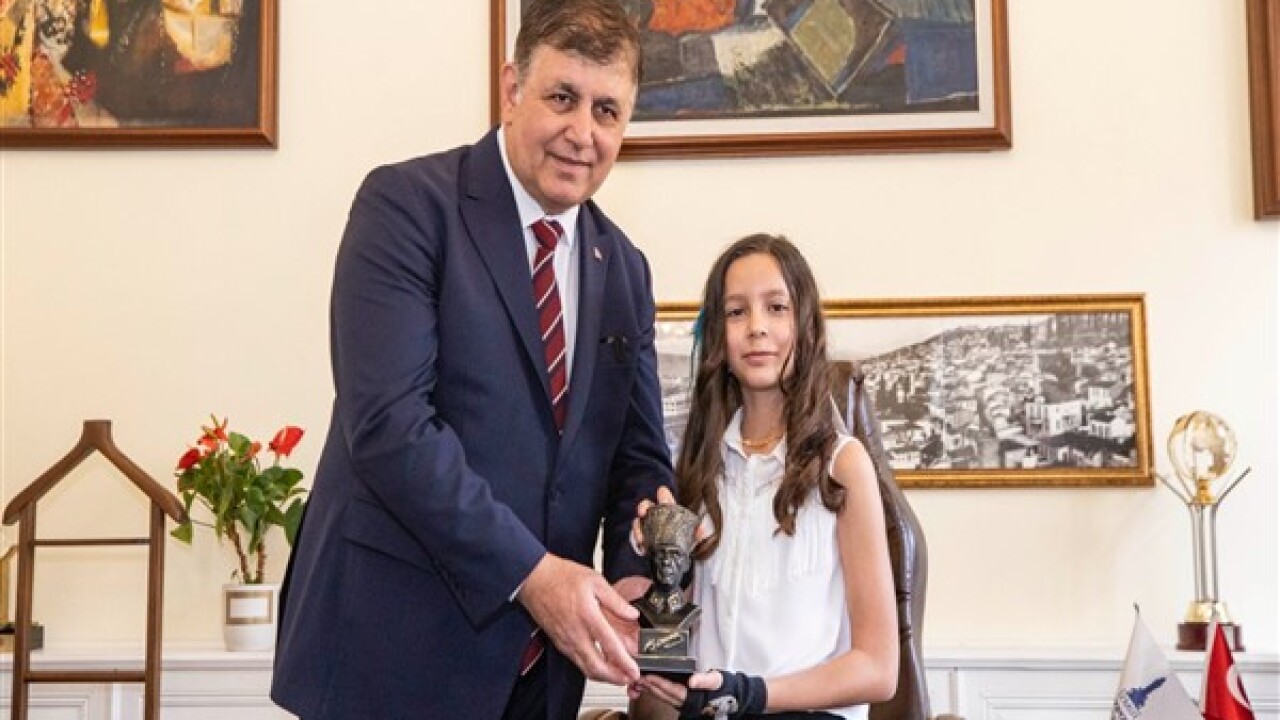 Başkan Tugay, 23 Nisan Ulusal Egemenlik ve Çocuk Bayramı’nda koltuğunu Konak Mehmet Akif Ersoy İlkokulu dördüncü sınıf öğrencisi Alya Ada Nizamoğlu’na devretti.
