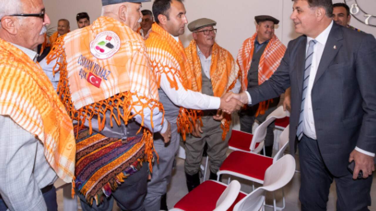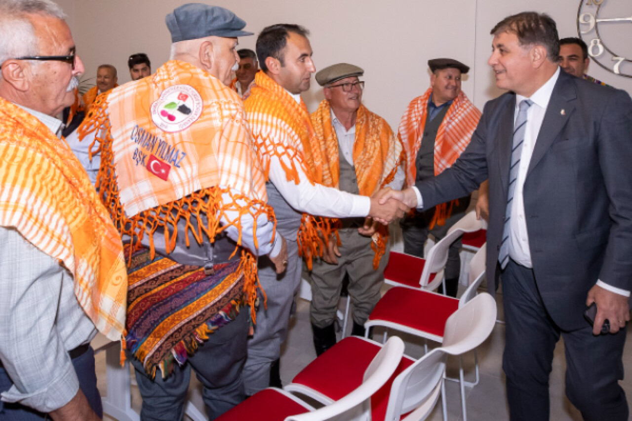Ege Bölgesi İzmir Yörük Türkmen Federasyonu Başkanı Ramazan Dumanlı ile federasyona bağlı derneklerin başkanları ve üyeleri, İzmir Büyükşehir Belediye Başkanı Cemil Tugay'ı ziyaret etti.