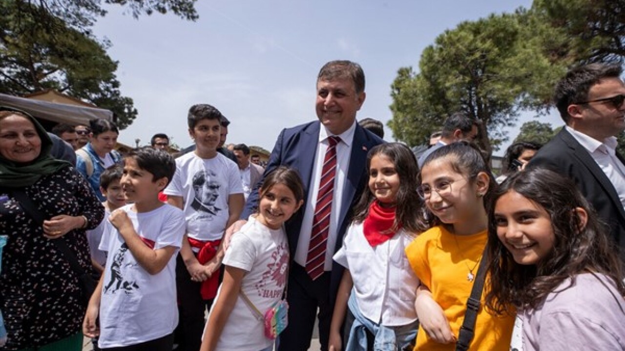 İzmir Büyükşehir Belediye Başkanı Dr. Cemil Tugay, ulu önder Mustafa Kemal Atatürk’ün tüm dünya çocuklarına miras bıraktığı 23 Nisan Ulusal Egemenlik ve Çocuk Bayramı’nda Kültürpark’ta düzenlenen Çocuk Şenliği’ne katıldı. Miniklerin bayramını kutlayan, fotoğraf çektirmek isteyen ailelerle bir araya gelen Başkan Cemil Tugay, “Bu sene 23 Nisan Ulusal Egemenlik ve Çocuk Bayramı ile TBMM’nin açılışının 104’üncü yıl dönümünü kutluyoruz. Umarım önümüzdeki yıllarda bu güzel çocuklar çok daha güzel günler yaşasınlar. Şenliğimiz de her sene bir öncekinden güzel olsun” diye konuştu.