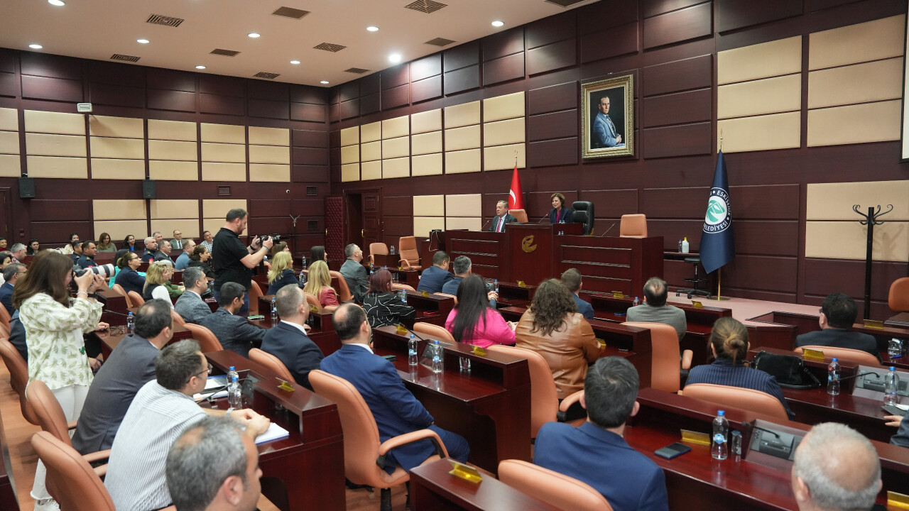 Eskişehir Büyükşehir Belediye Başkanı Ayşe Ünlüce, Büyükşehir Belediyesi Meclis Salonu’nda Büyükşehir Belediyesi, Eskişehir Büyükşehir Belediyesi Su ve Kanalizasyon İdaresi Genel Müdürlüğü (ESKİ) ve belediye şirketleri yöneticileriyle bir araya geldi.