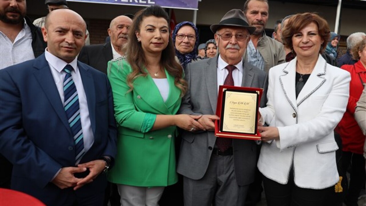 Başkan Ünlüce, Gültepe’nin yeni seçilen muhtarı Canan Özkara tarafından muhtarlık binasında Gültepe mahalle muhtarılığı görevini 40 yıldır yapan Ali Al için düzenlenen törende teşekkür plaketi verdi.