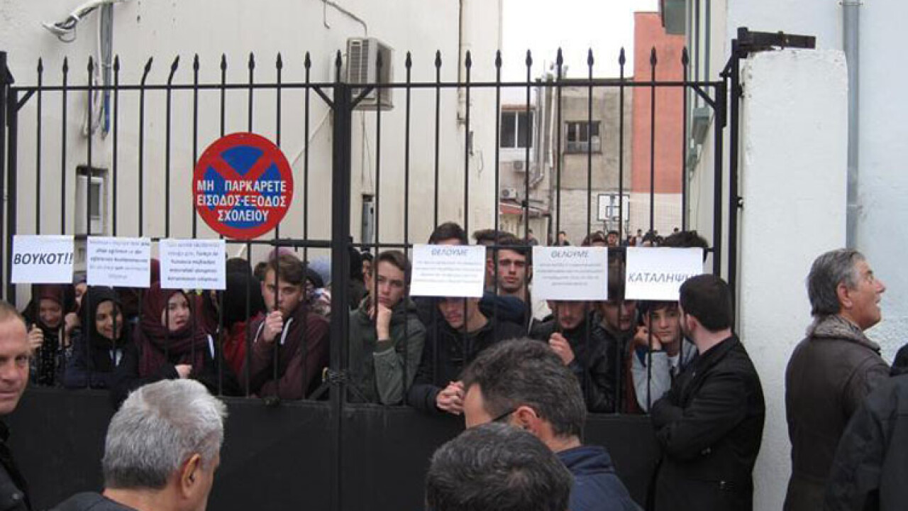 Batı Trakya'da, Gümülcine Medrese-i Hayriye okulu öğrencileri, Türkçe ders saatlerinin azaltıldığı gerekçesiyle protesto gösterisi düzenledi.