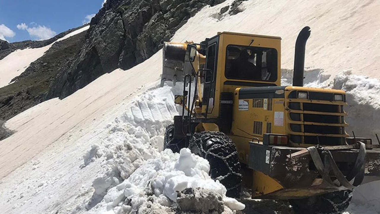 İl Özel İdaresi Konursu Şantiye Şefi Fırat Türk idaresindeki ekip, iş makinesiyle Bayburt-Trabzon arasında "yedi göller" bölgesi olarak da bilinen 2 bin 700 rakımlı Haldizen Yaylası yolunda, yüksekliği yer yer 3 metreyi bulan kar birikintisini temizledi.